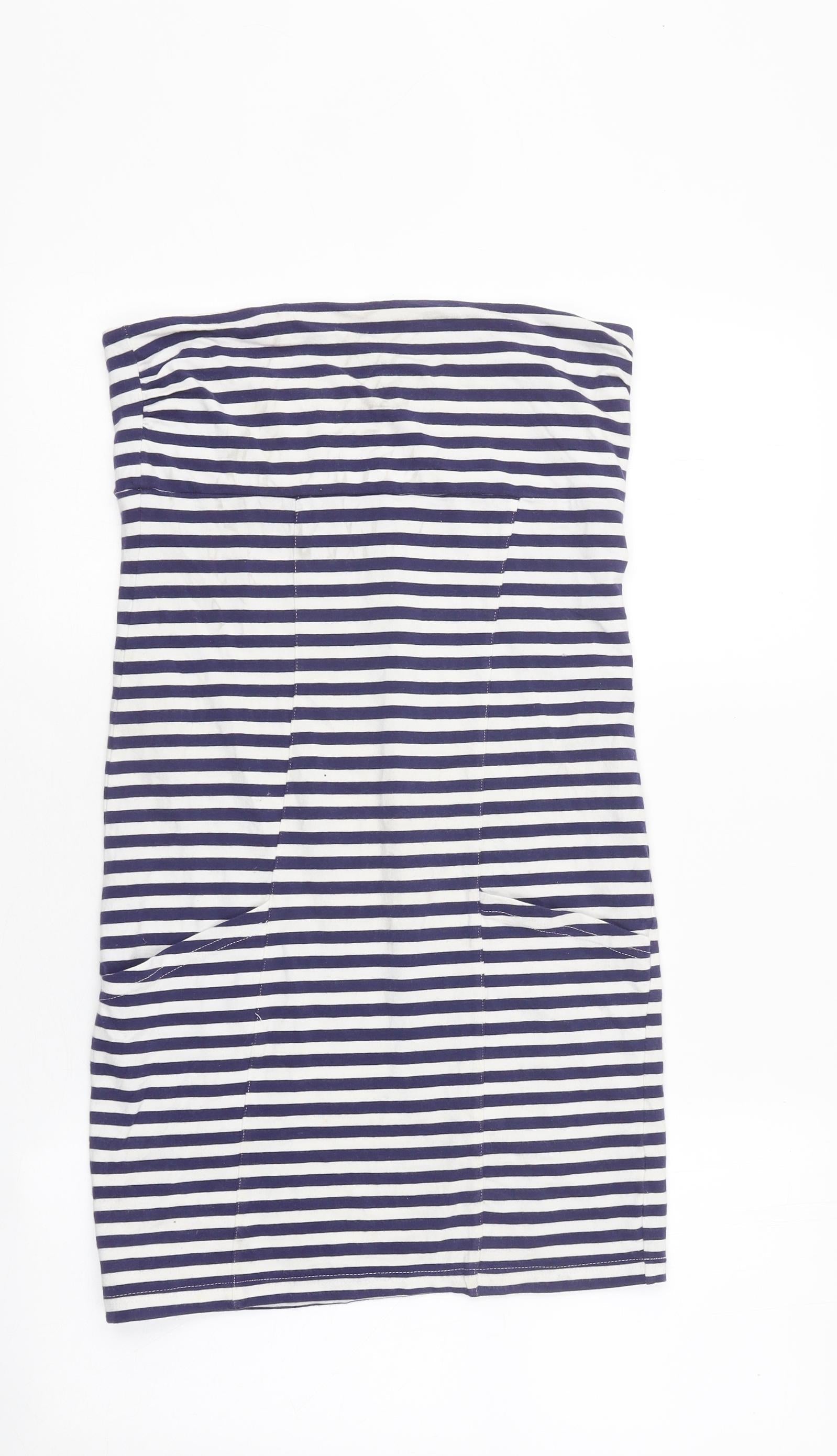 Miss Selfridge Womens White Striped Cotton Basic Tank Size 12 Off the Shoulder