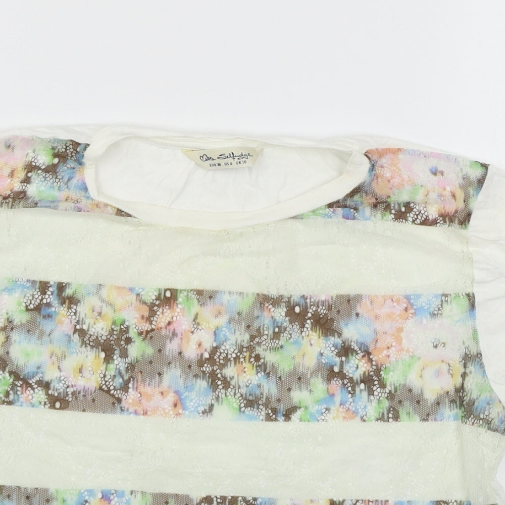 Miss Selfridge Womens White Striped Jersey Basic T-Shirt Size 10