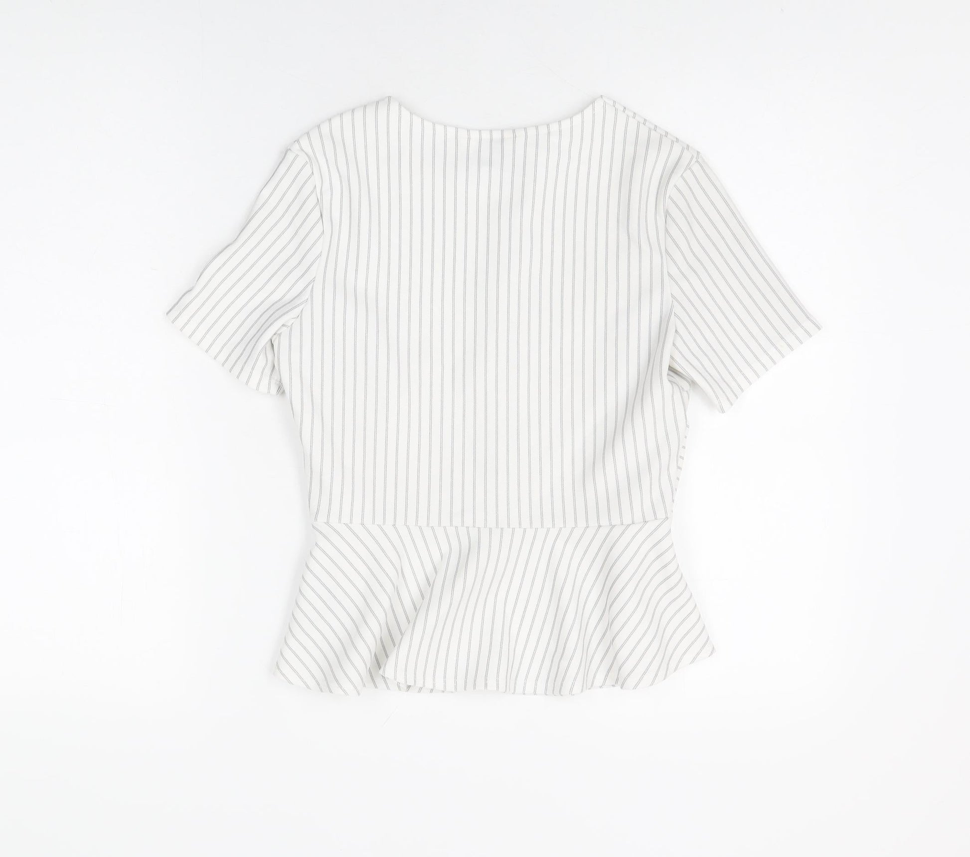 Miss Selfridge Womens White Striped Polyester Basic T-Shirt Size 8 Round Neck