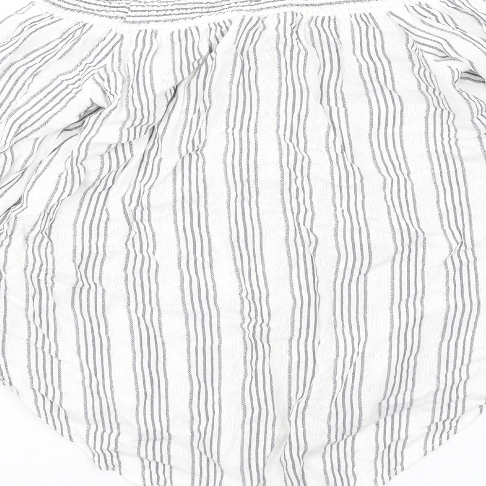 Miss Selfridge Womens White Striped Viscose Basic T-Shirt Size 8 Off the Shoulder