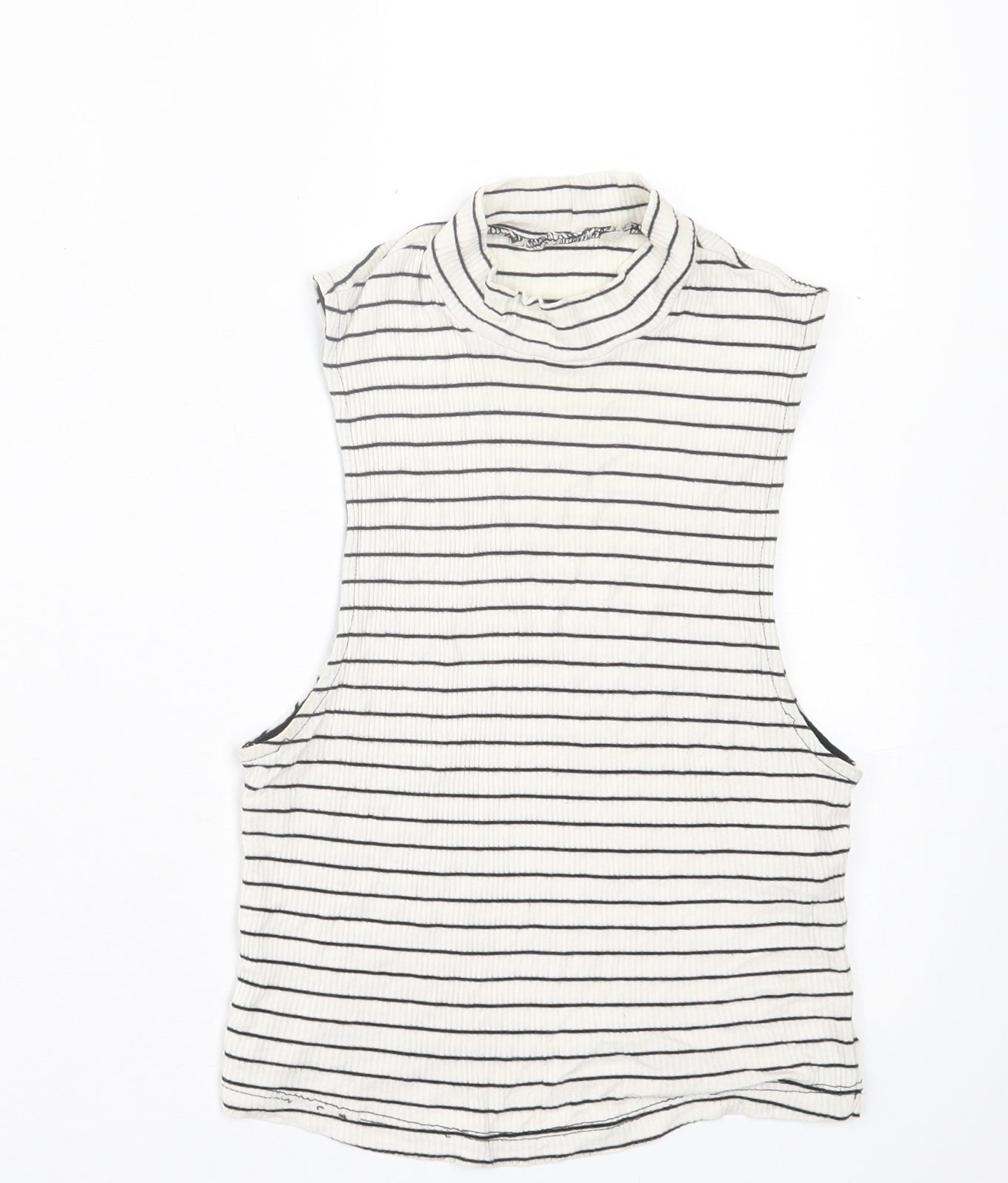 Miss Selfridge Womens White Striped Viscose Cropped Tank Size 8 High Neck