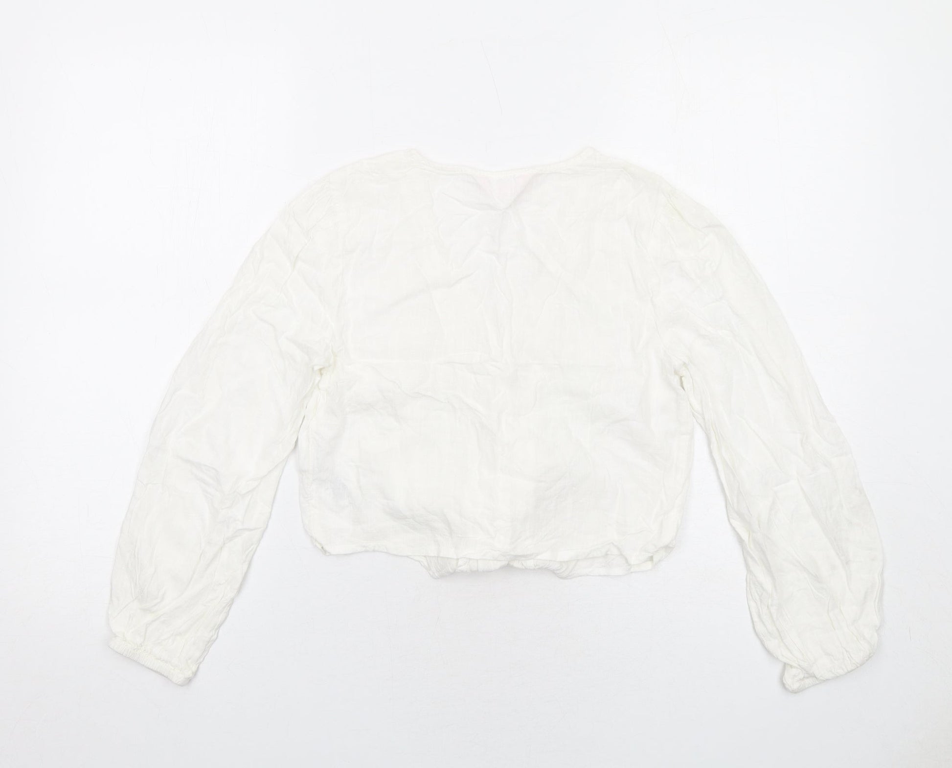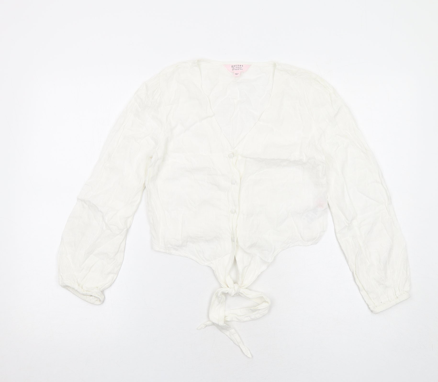 Miss Selfridge Womens White Viscose Basic Button-Up Size 8 V-Neck - Tie Front