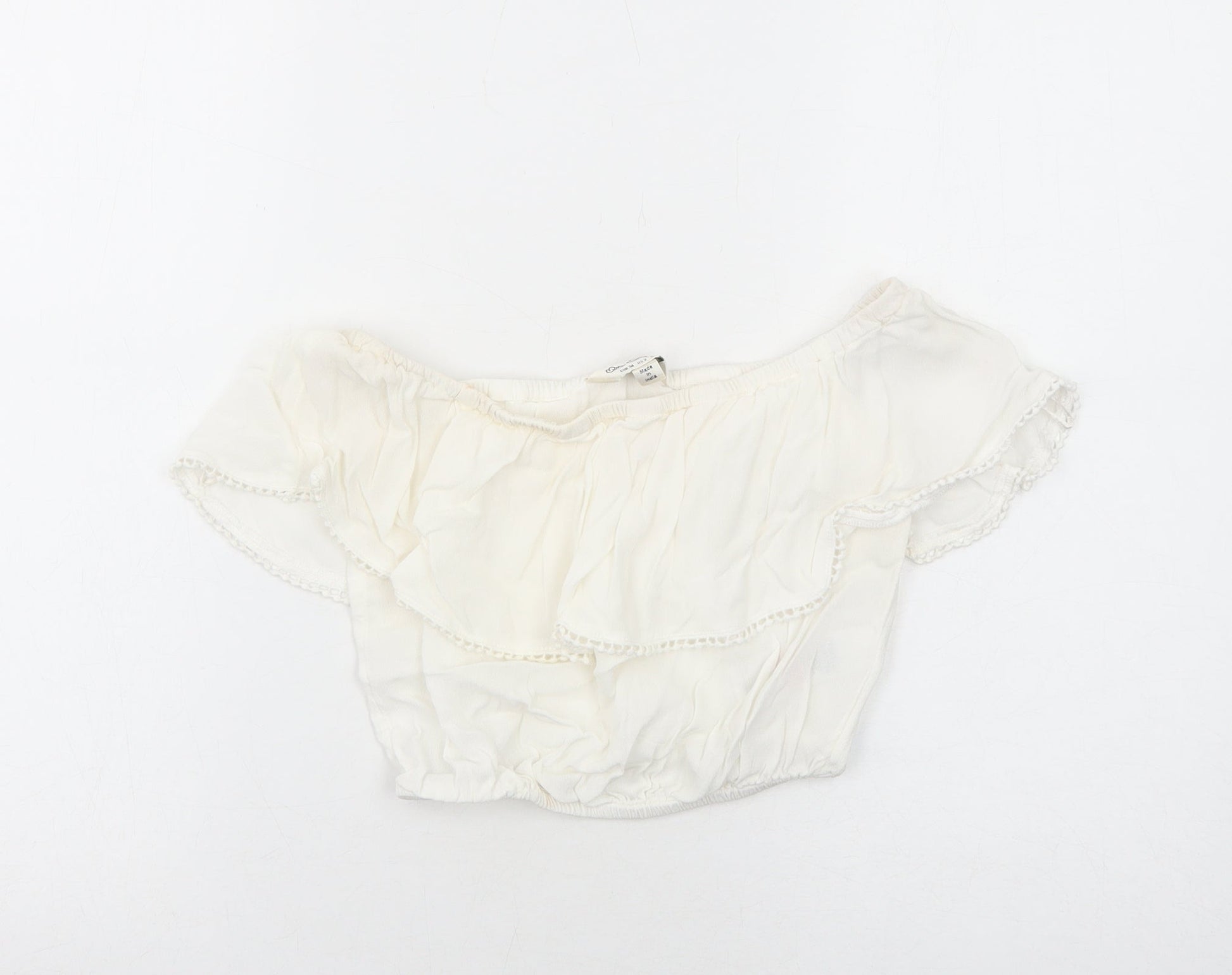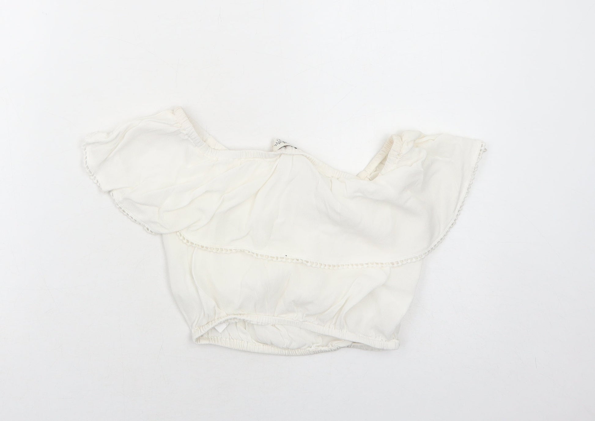 Miss Selfridge Womens White Viscose Cropped Blouse Size 6 Off the Shoulder