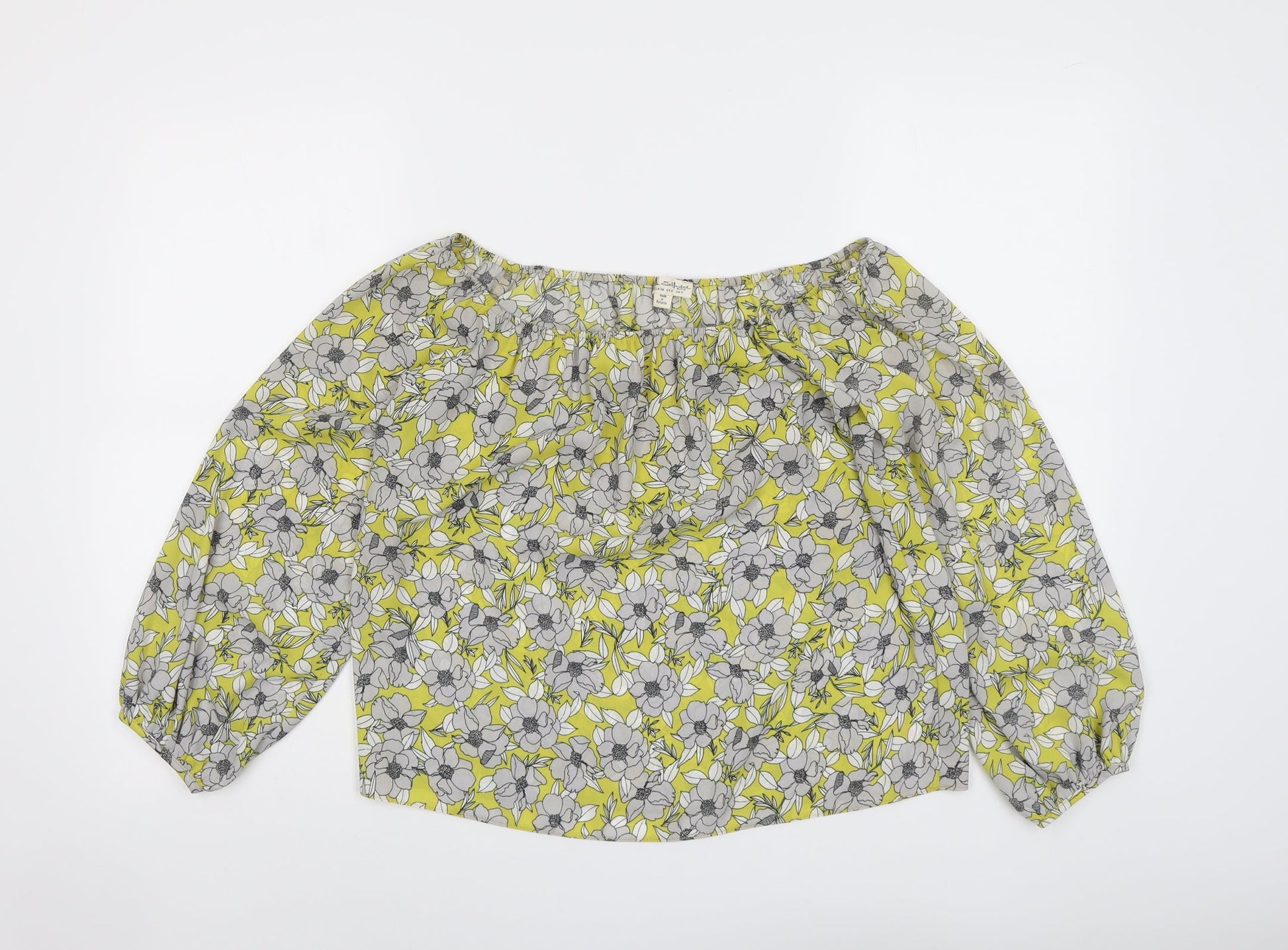 Miss Selfridge Womens Yellow Floral Polyester Basic Blouse Size 6 Off the Shoulder