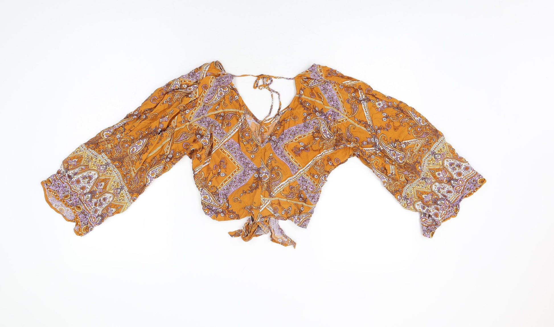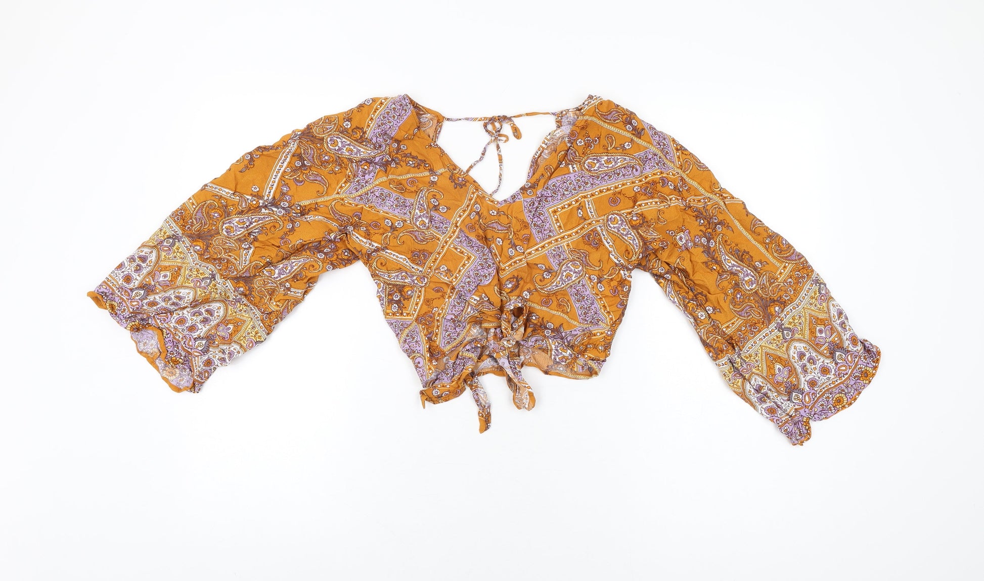 Miss Selfridge Womens Yellow Floral Viscose Basic Blouse Size 10 V-Neck
