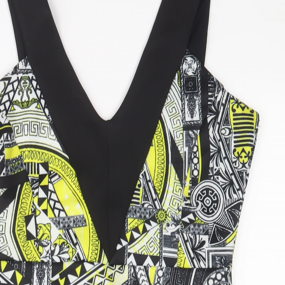 Miss Selfridge Womens Yellow Geometric Polyester A-Line Size 12 V-Neck Pullover