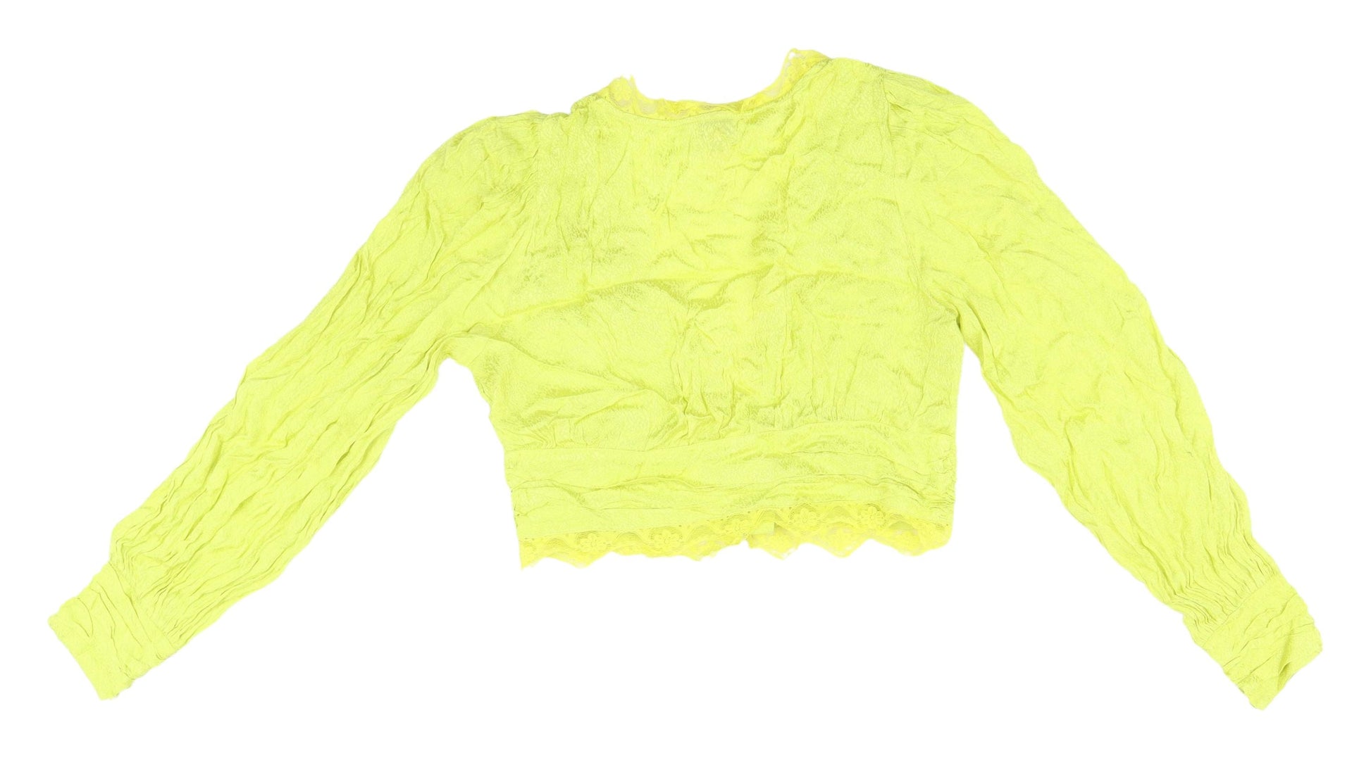 Miss Selfridge Women's Yellow Lace Cropped Blouse UK 14