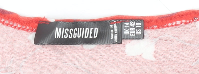 Missguided Women Red Floral Wrap Dress Size 14 Short Sleeve V-Neck