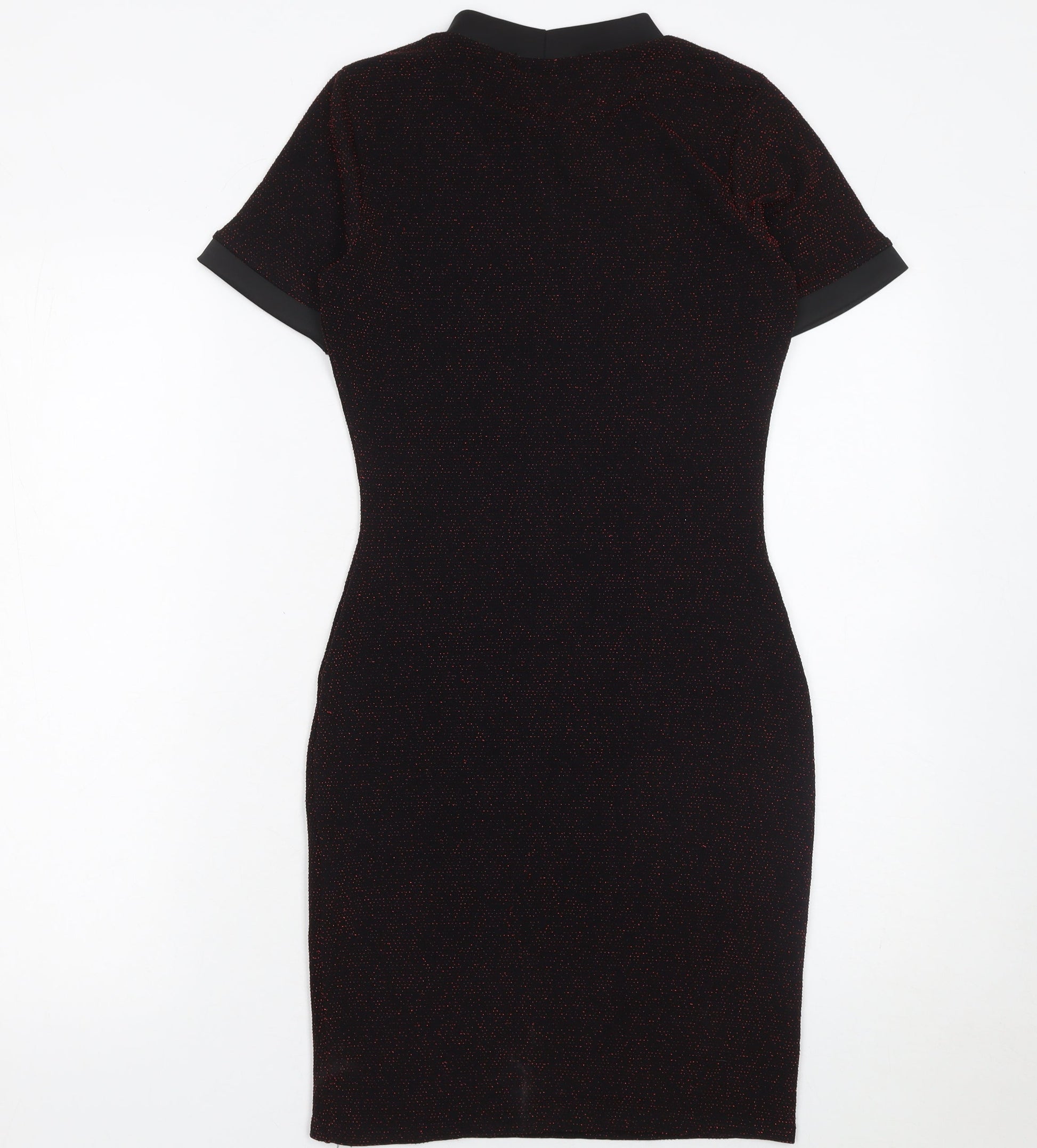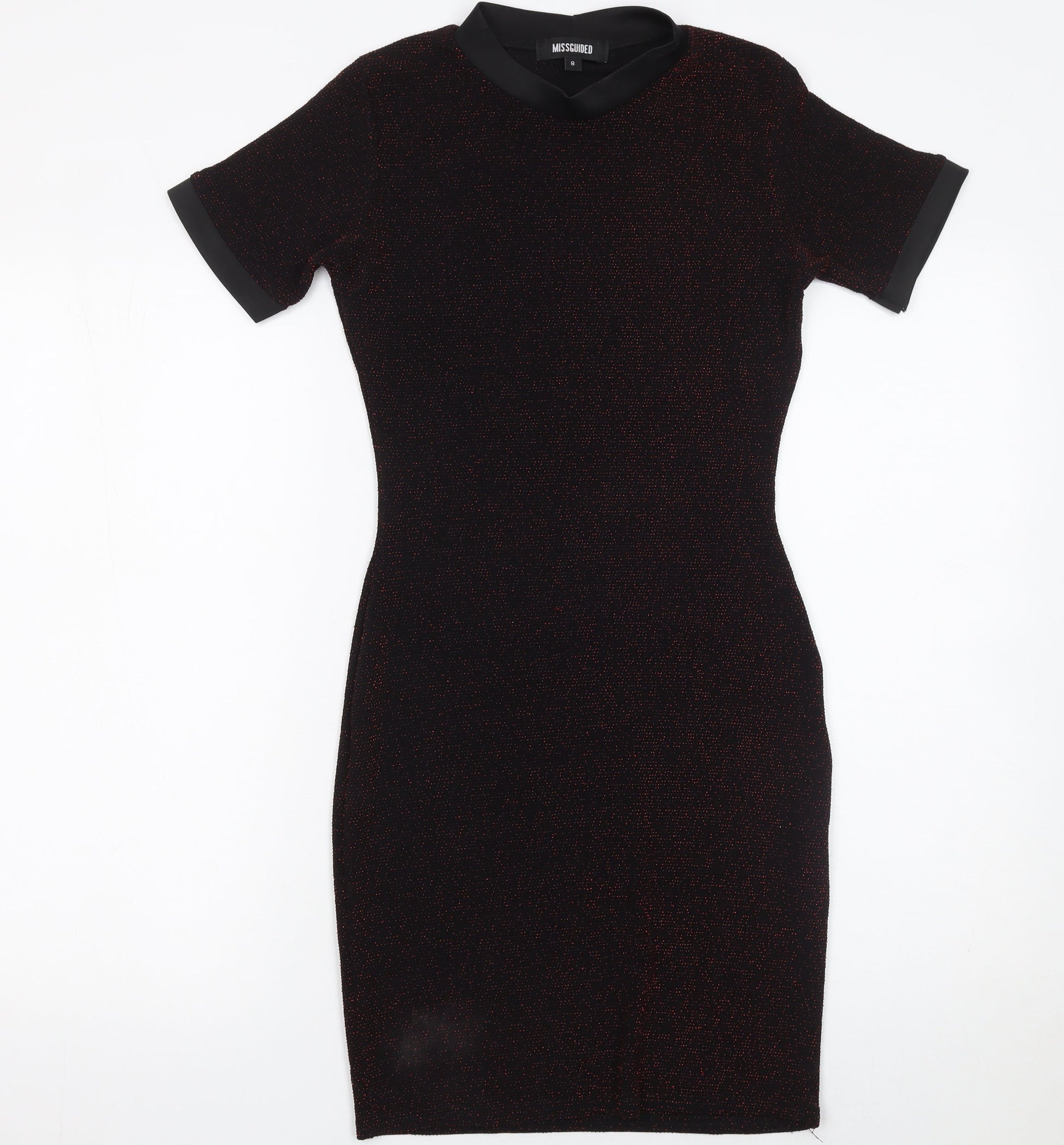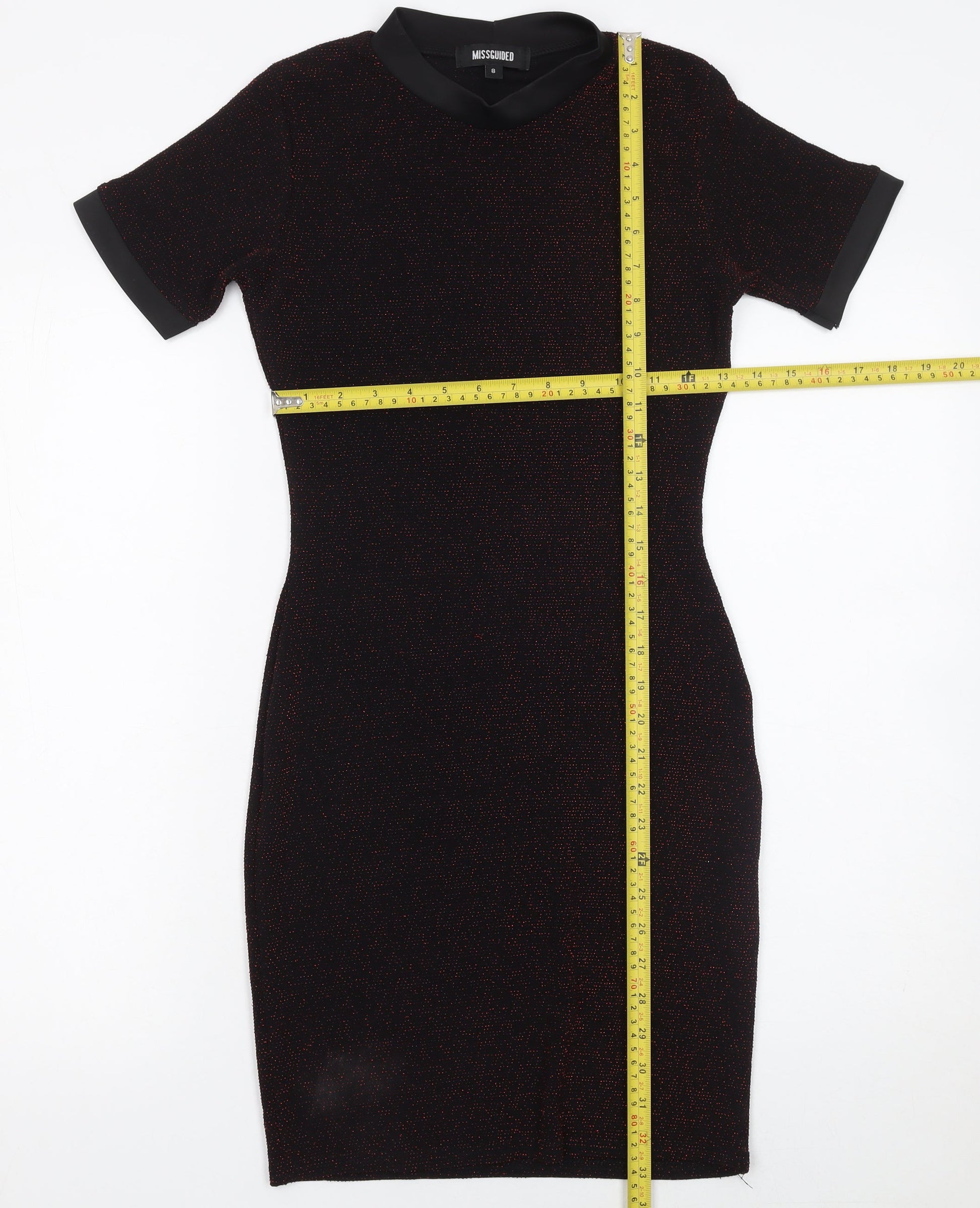 Missguided Women’s Black Metallic Bodycon Dress Size 8 Short Sleeve