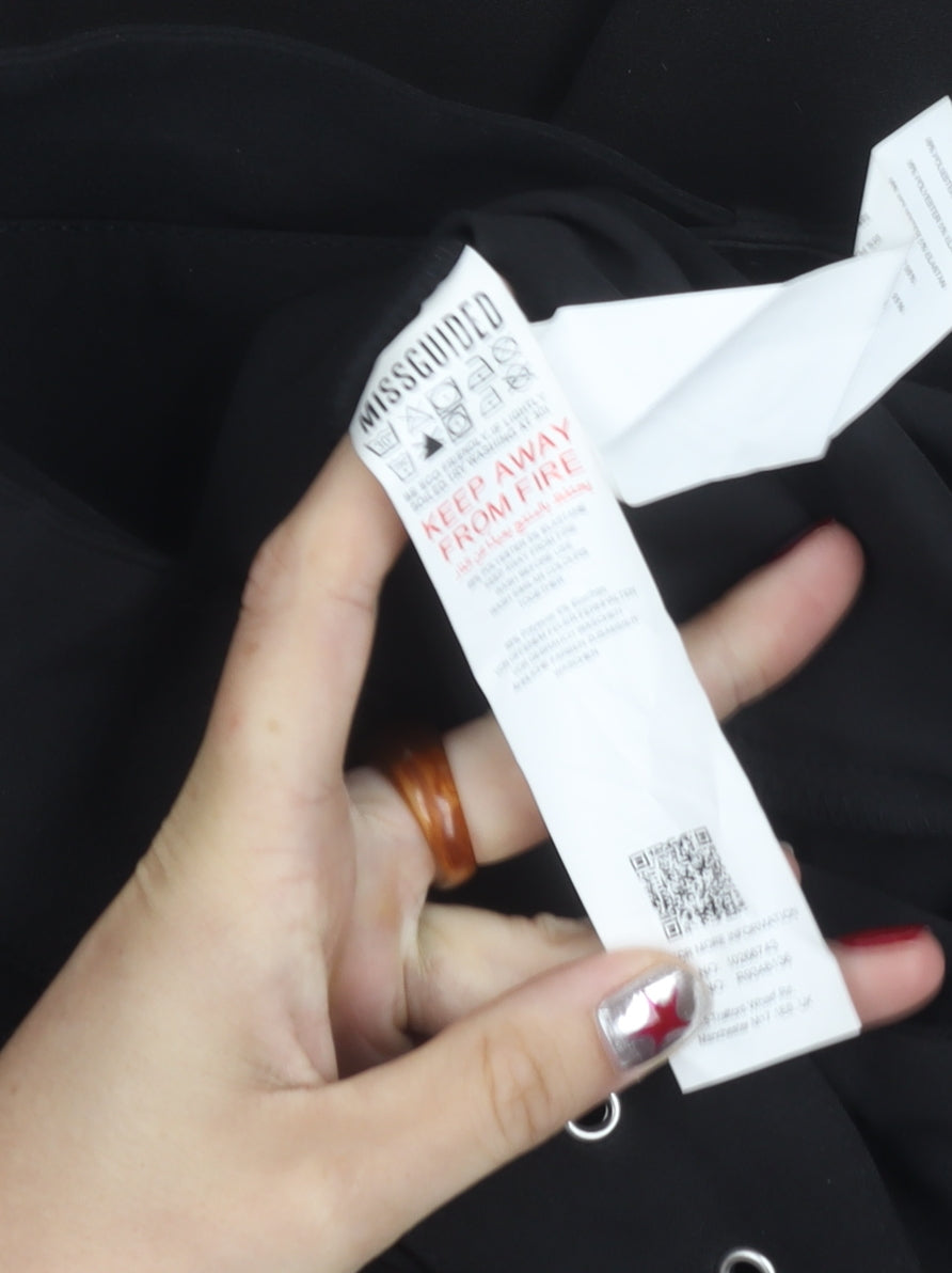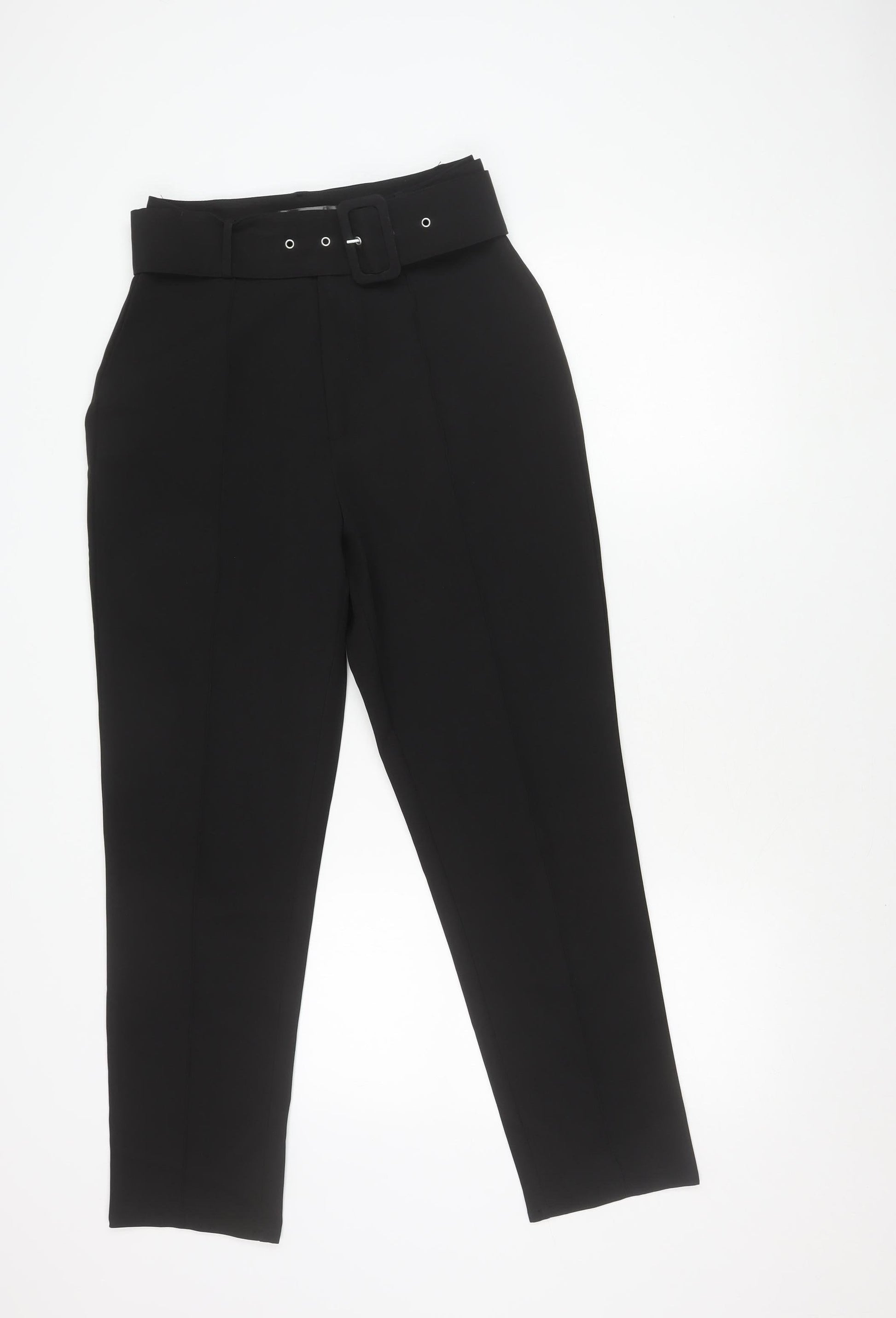 Missguided Women’s Black Size 8 High Rise Tapered Belted Crepe Trousers