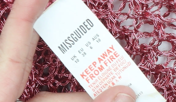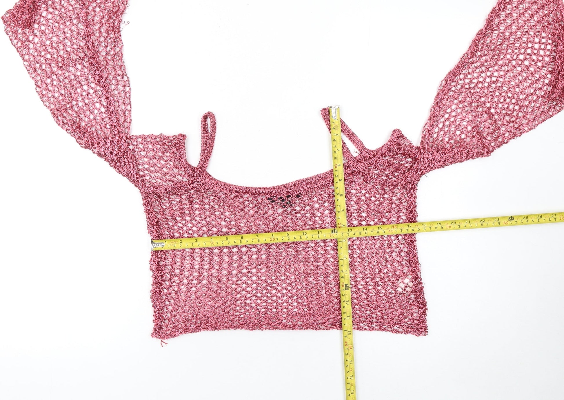 Missguided Women’s Pink Crochet Metallic Cropped Flared Sleeve Blouse UK 10