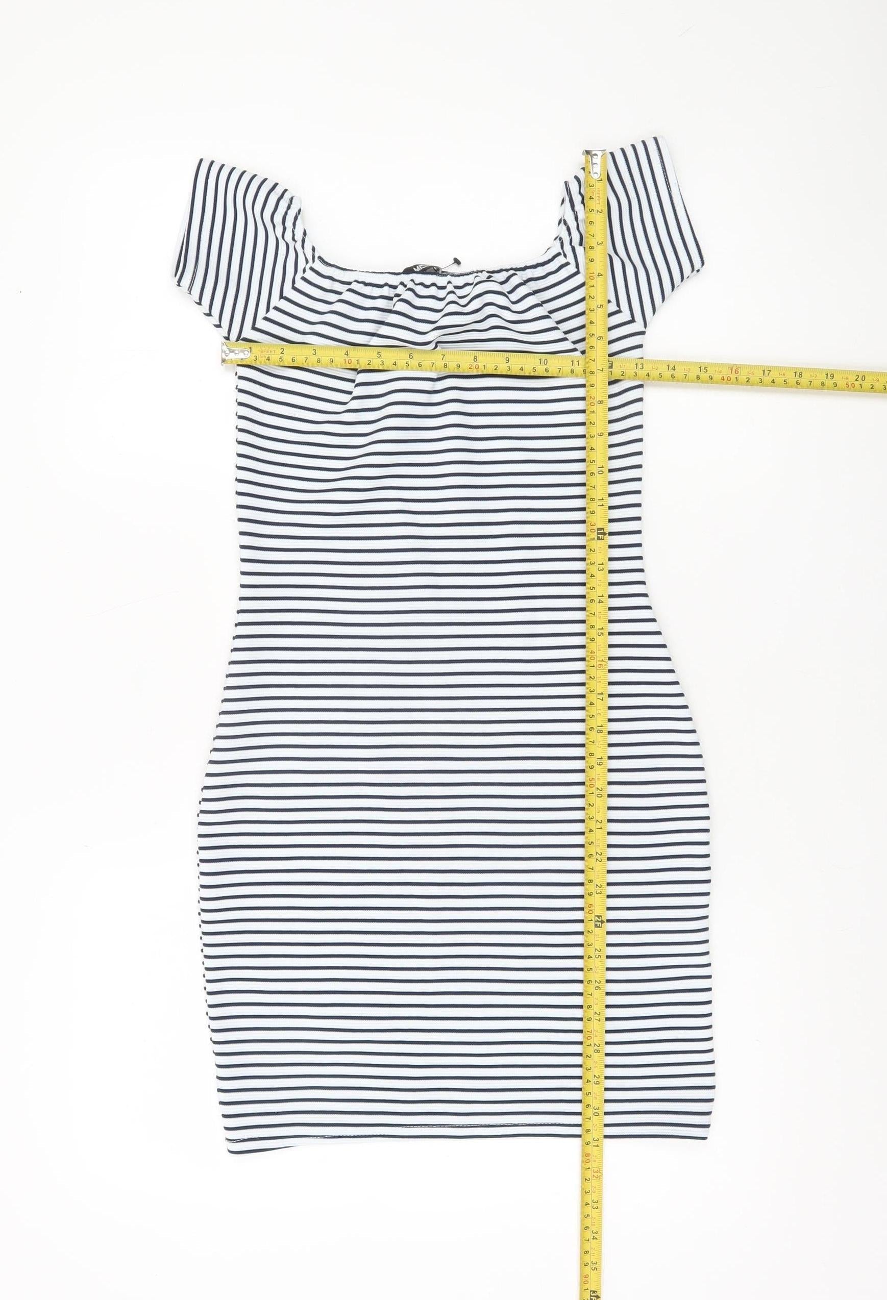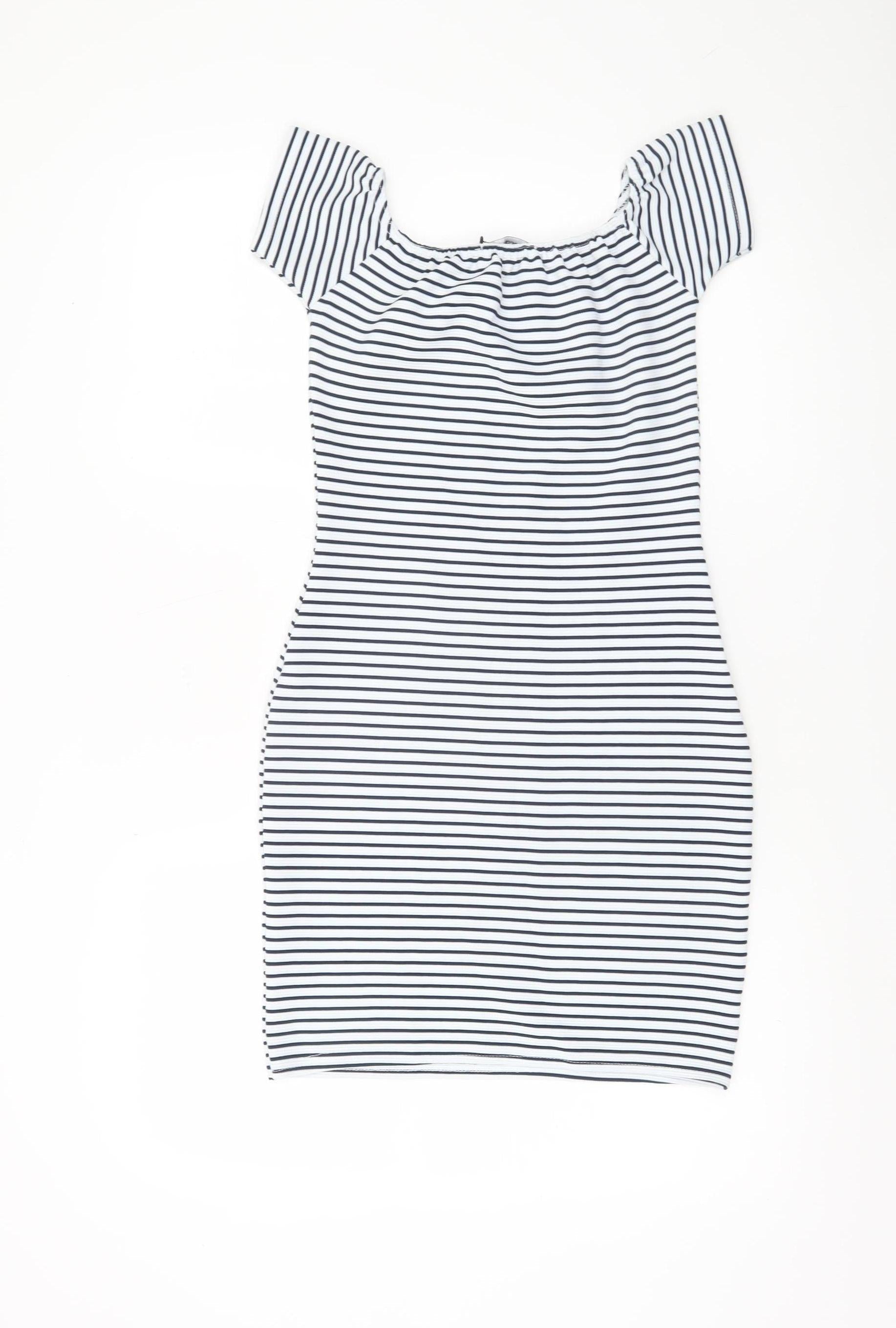 Missguided Women’s White Striped Bodycon Dress Size 6 Off Shoulder