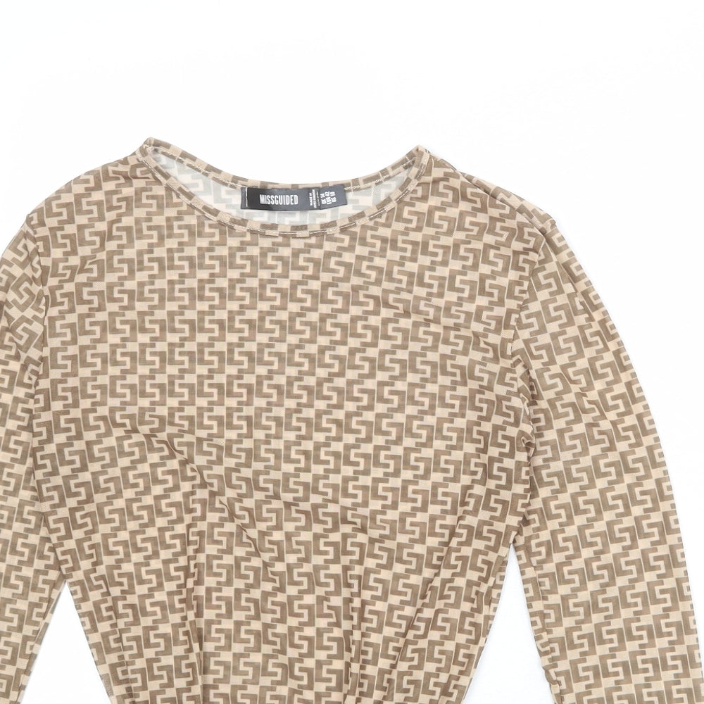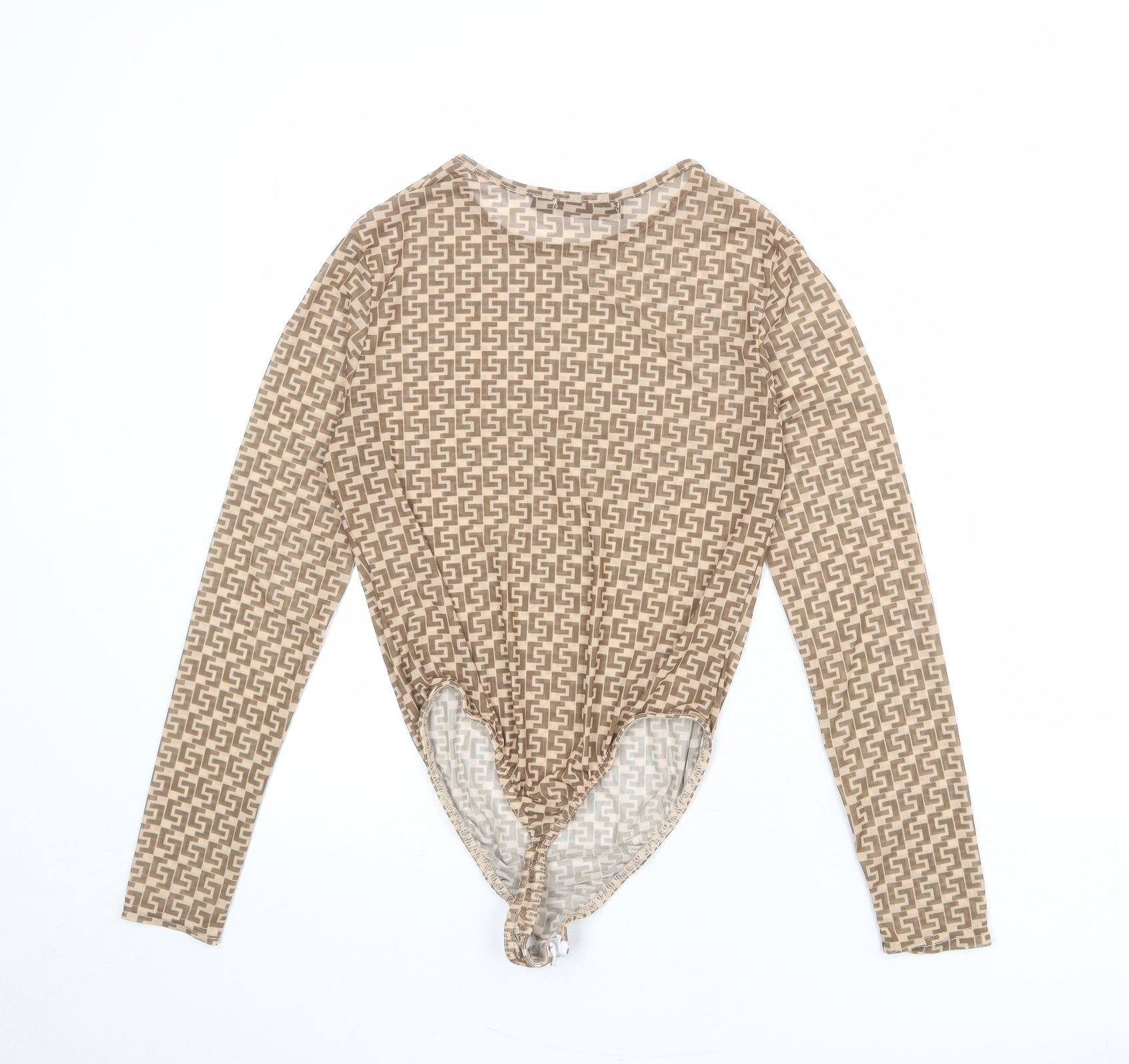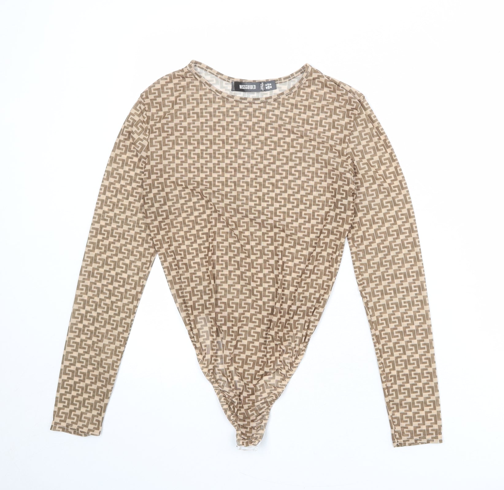 Missguided Womens Beige Geometric Polyester Bodysuit One-Piece Size 14 Snap