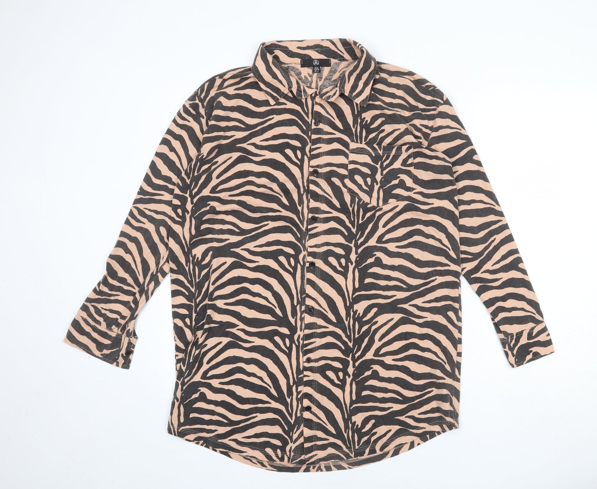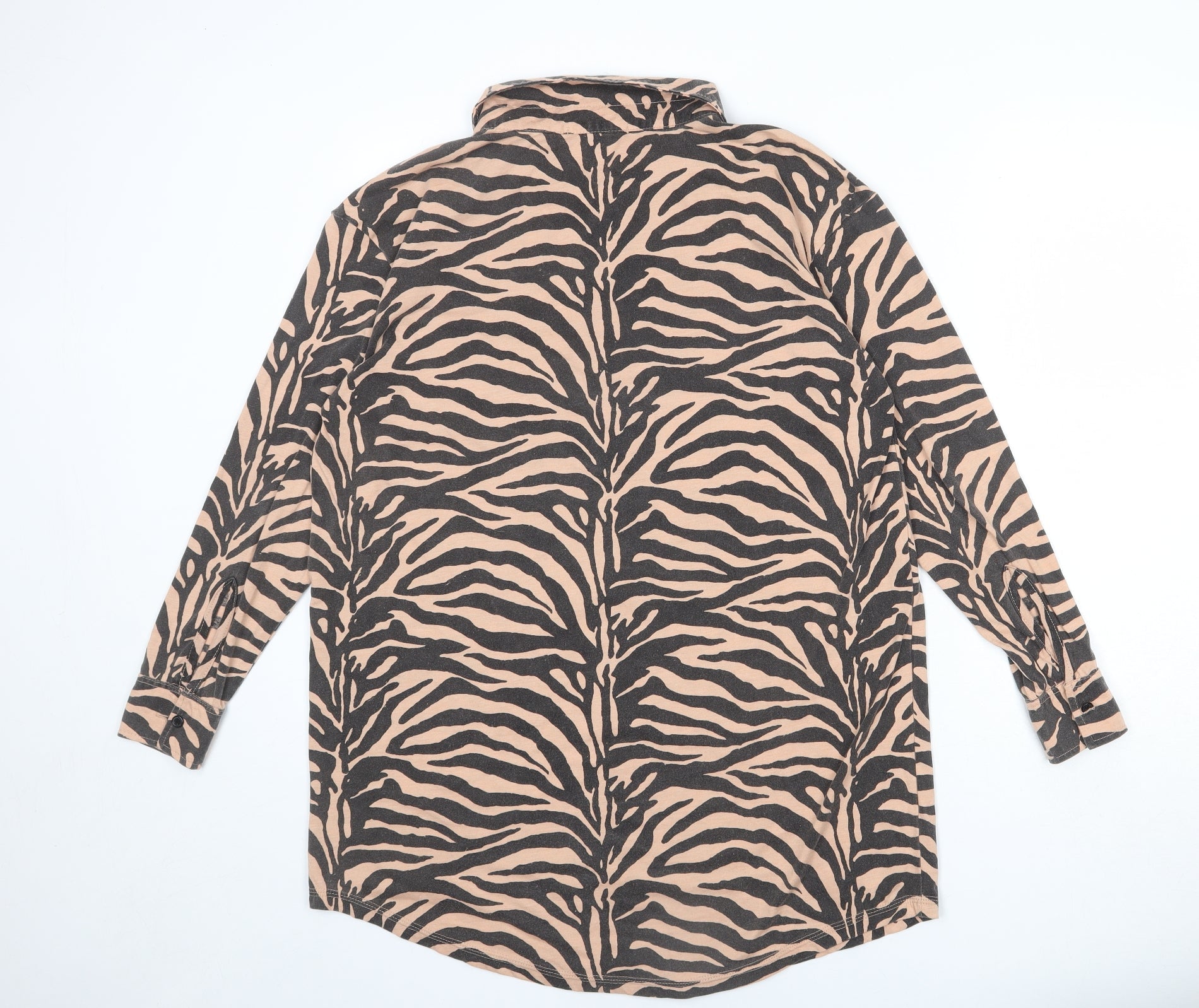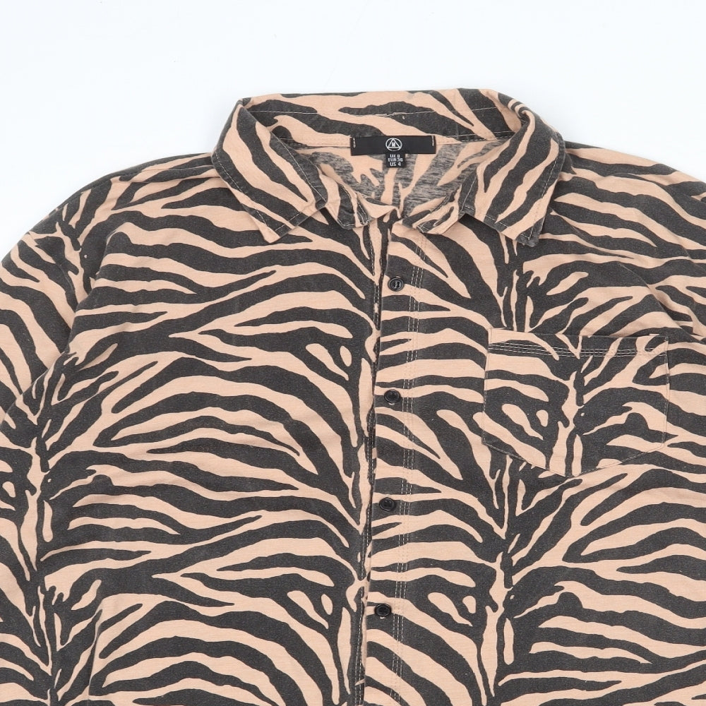 Missguided Womens Beige Geometric Polyester Shirt Dress Size 8 Collared Button