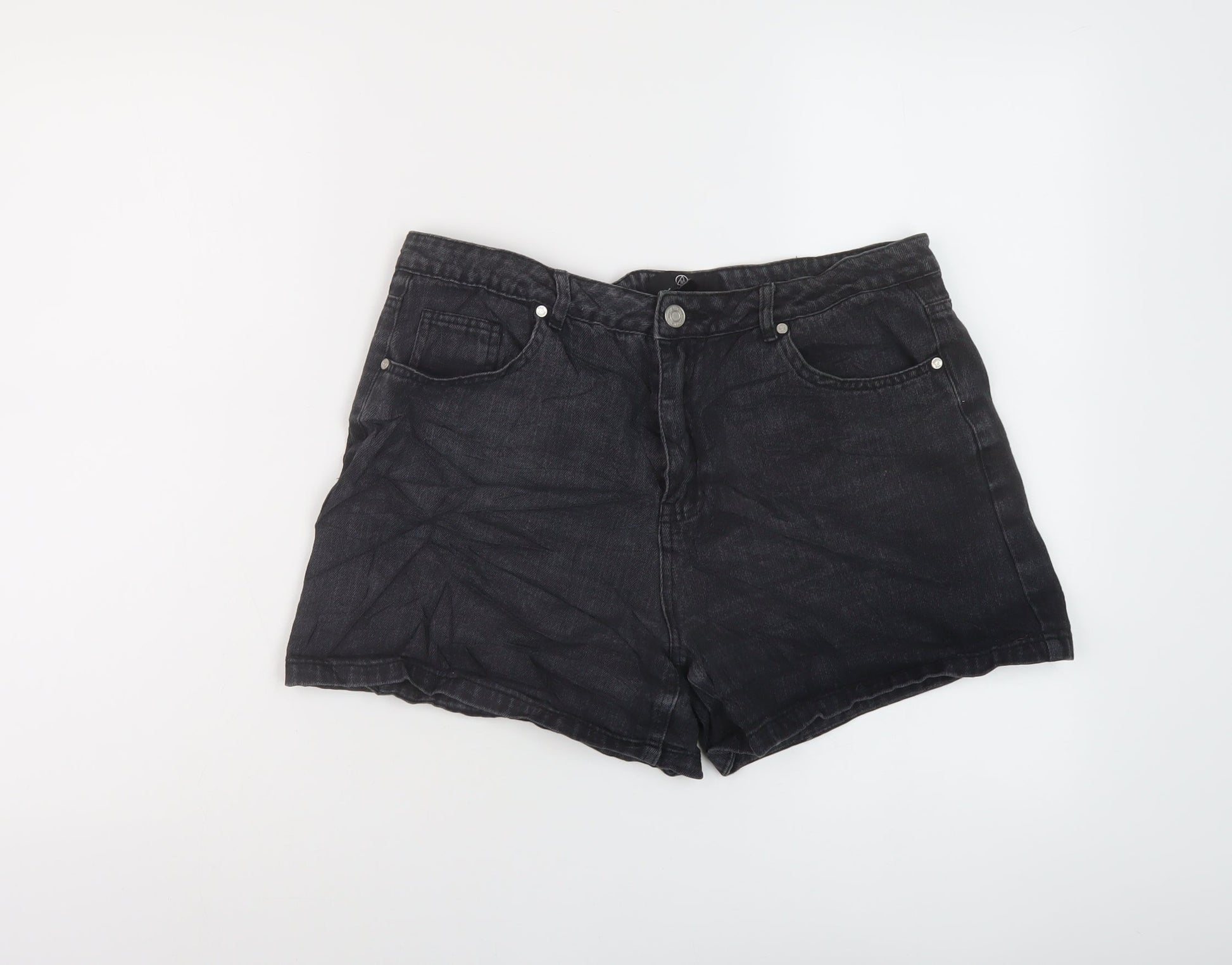 Missguided Womens Black Cotton Mom Shorts Size 12 L4 in Regular Button