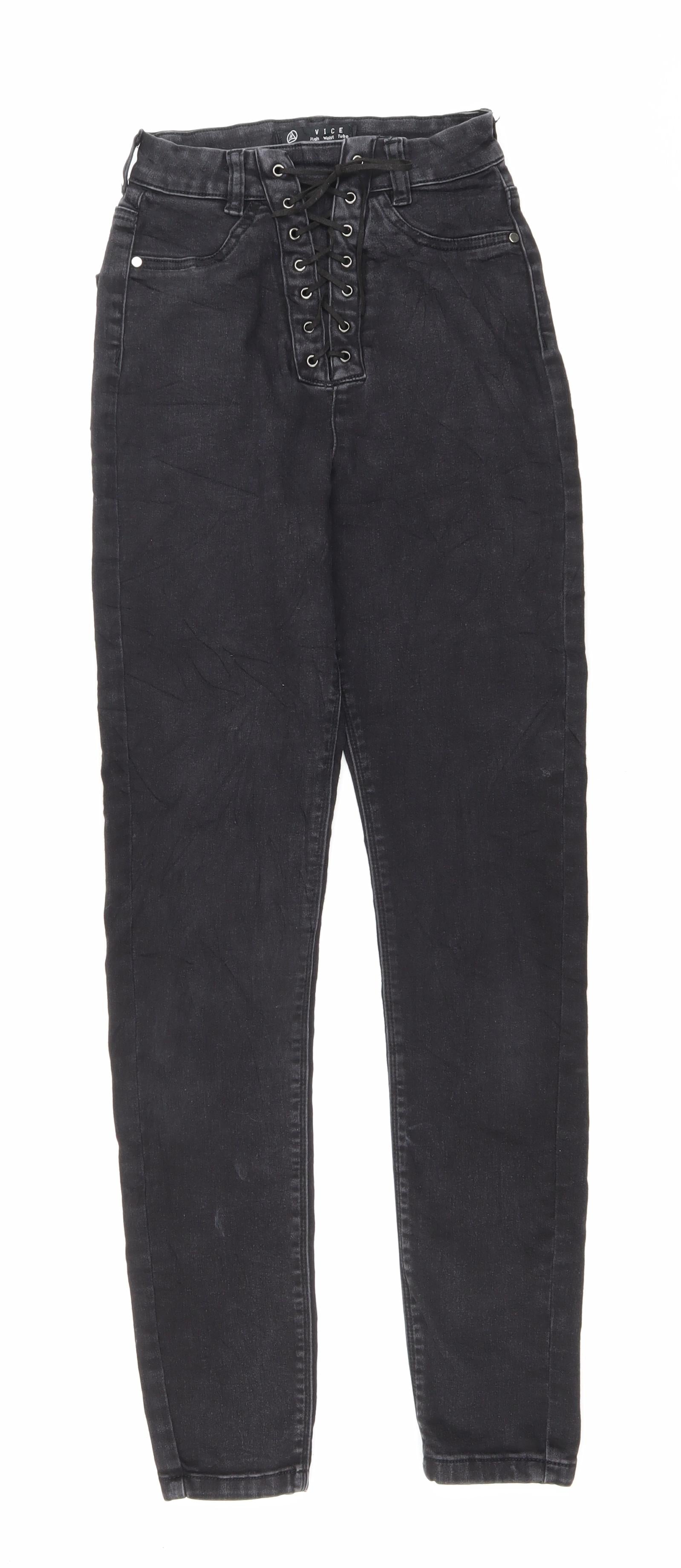 Missguided Womens Black Cotton Skinny Jeans Size 4 L28 in Regular Button - Lace up detail on front