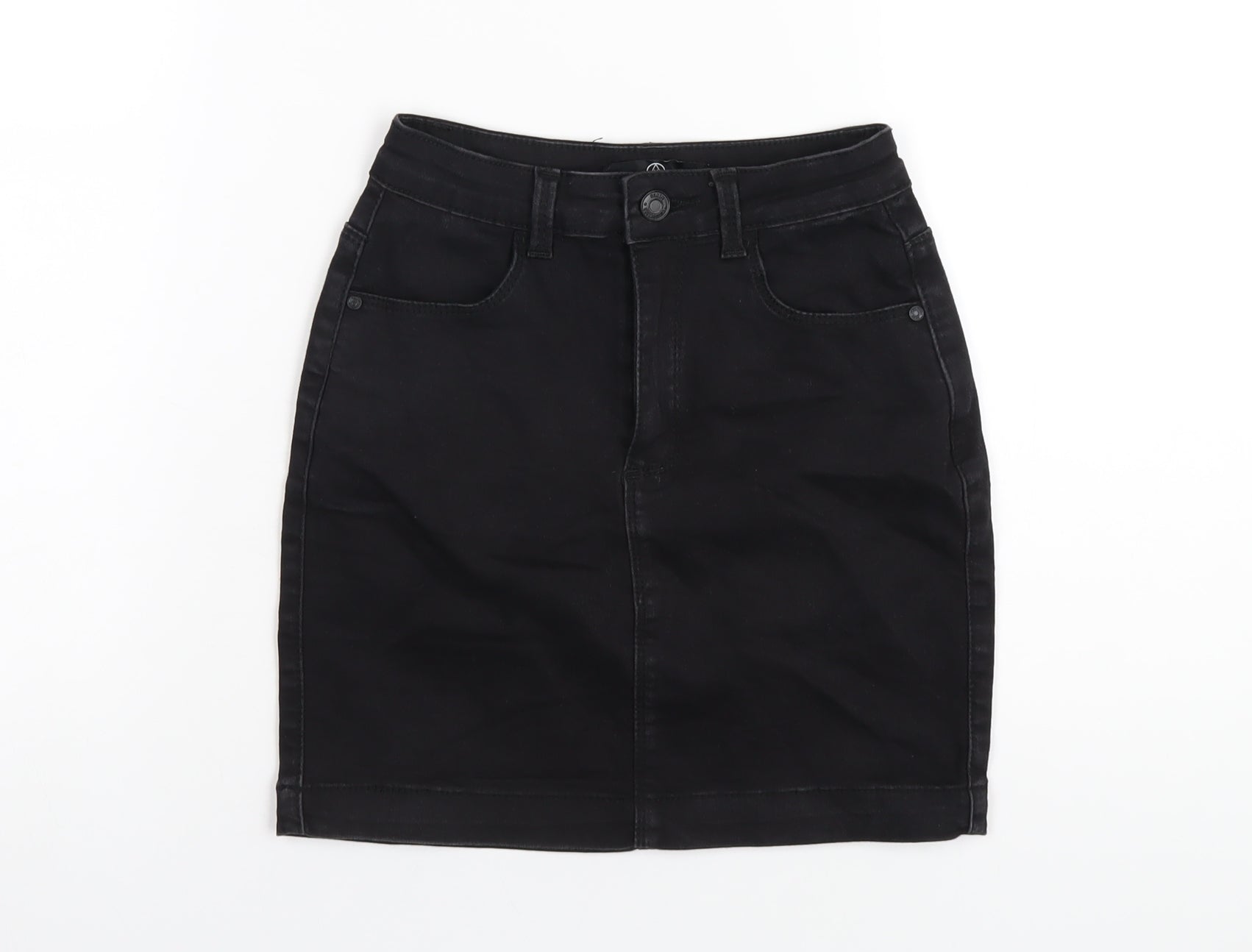 Missguided Womens Black Cotton Straight & Pencil Skirt Size 6 Zip
