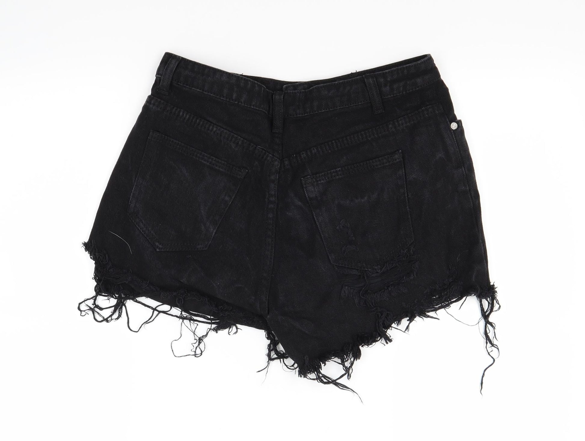 Missguided Womens Black Denim Cut-Off Shorts Size 8