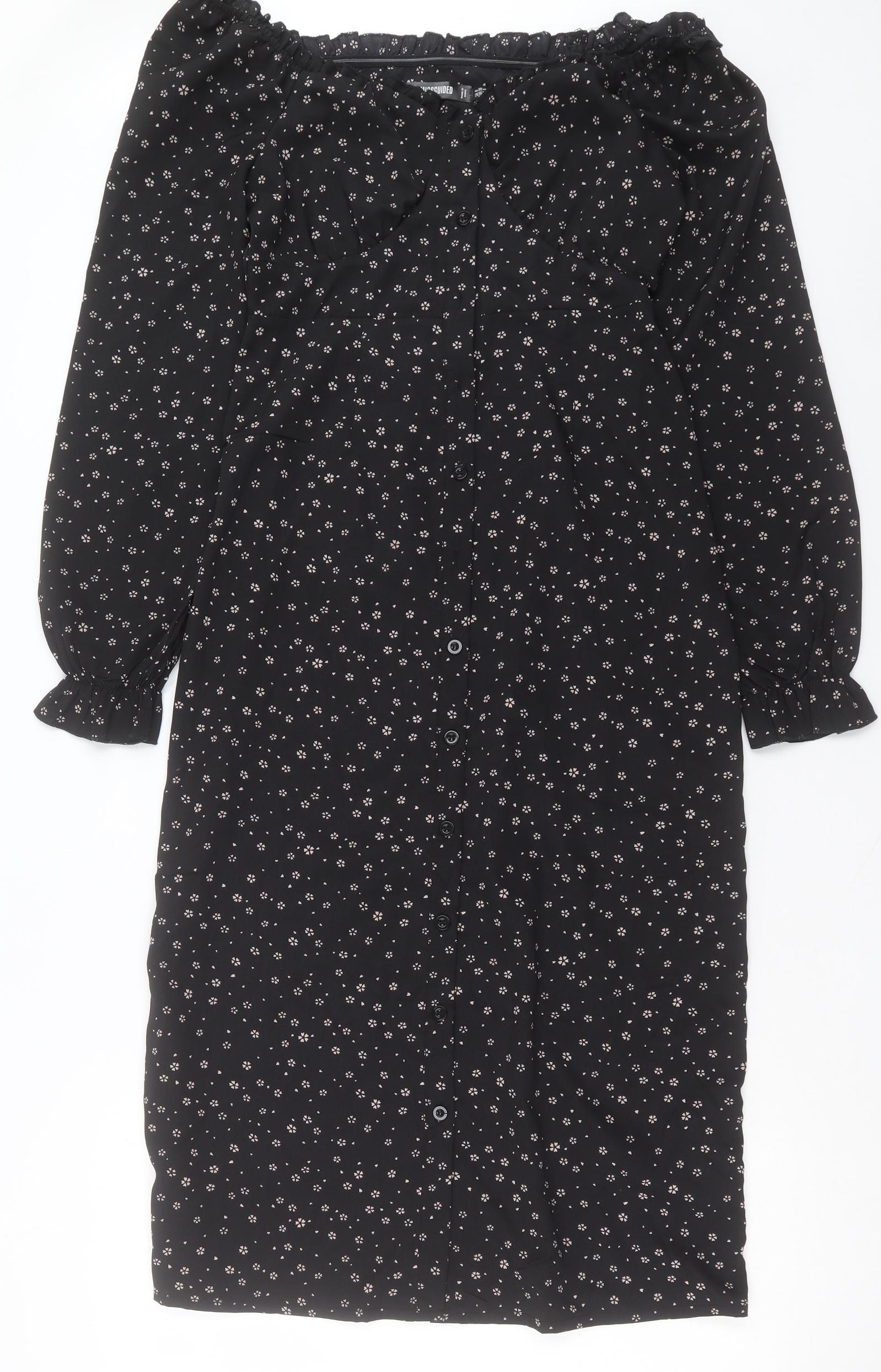 Missguided Womens Black Fair Isle Polyester A-Line Size 8 Boat Neck Button