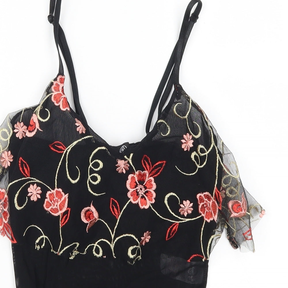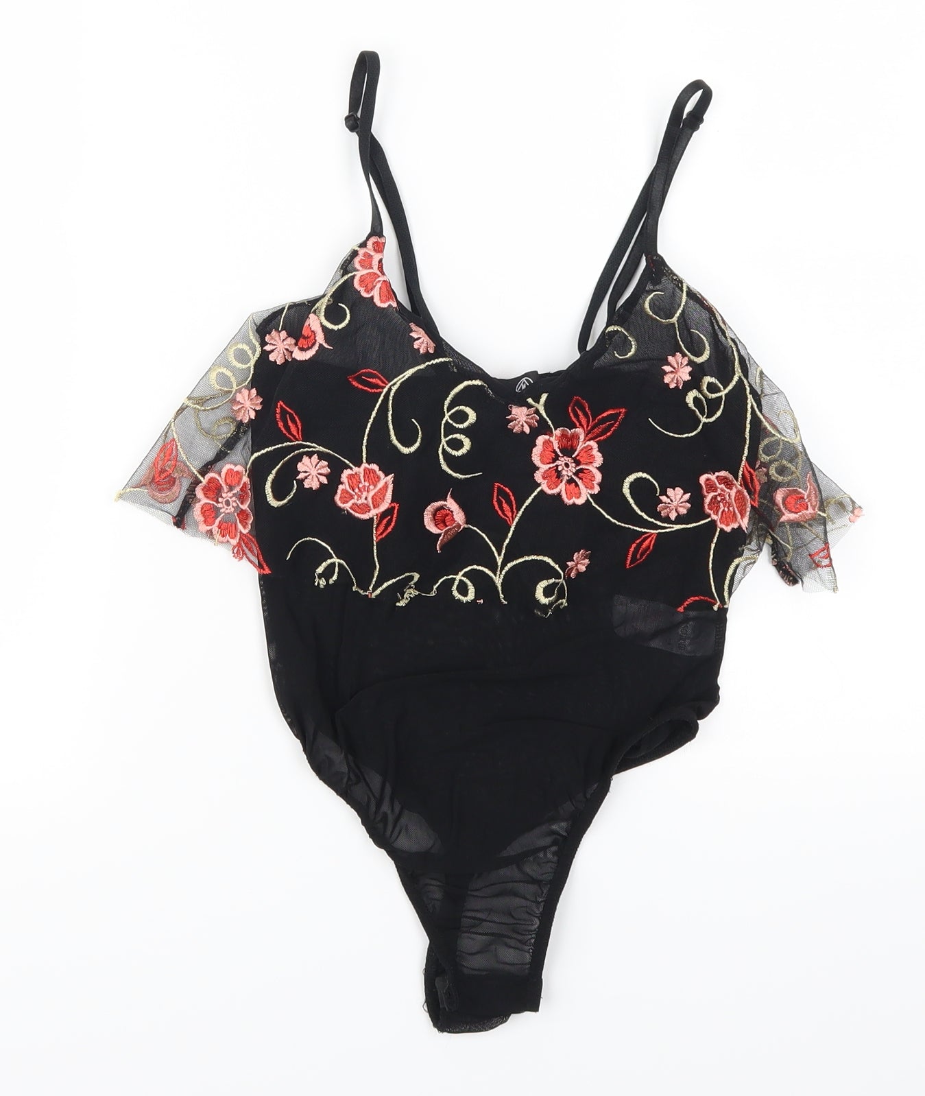 Missguided Womens Black Flecked Lace Bodysuit One-Piece Size 4