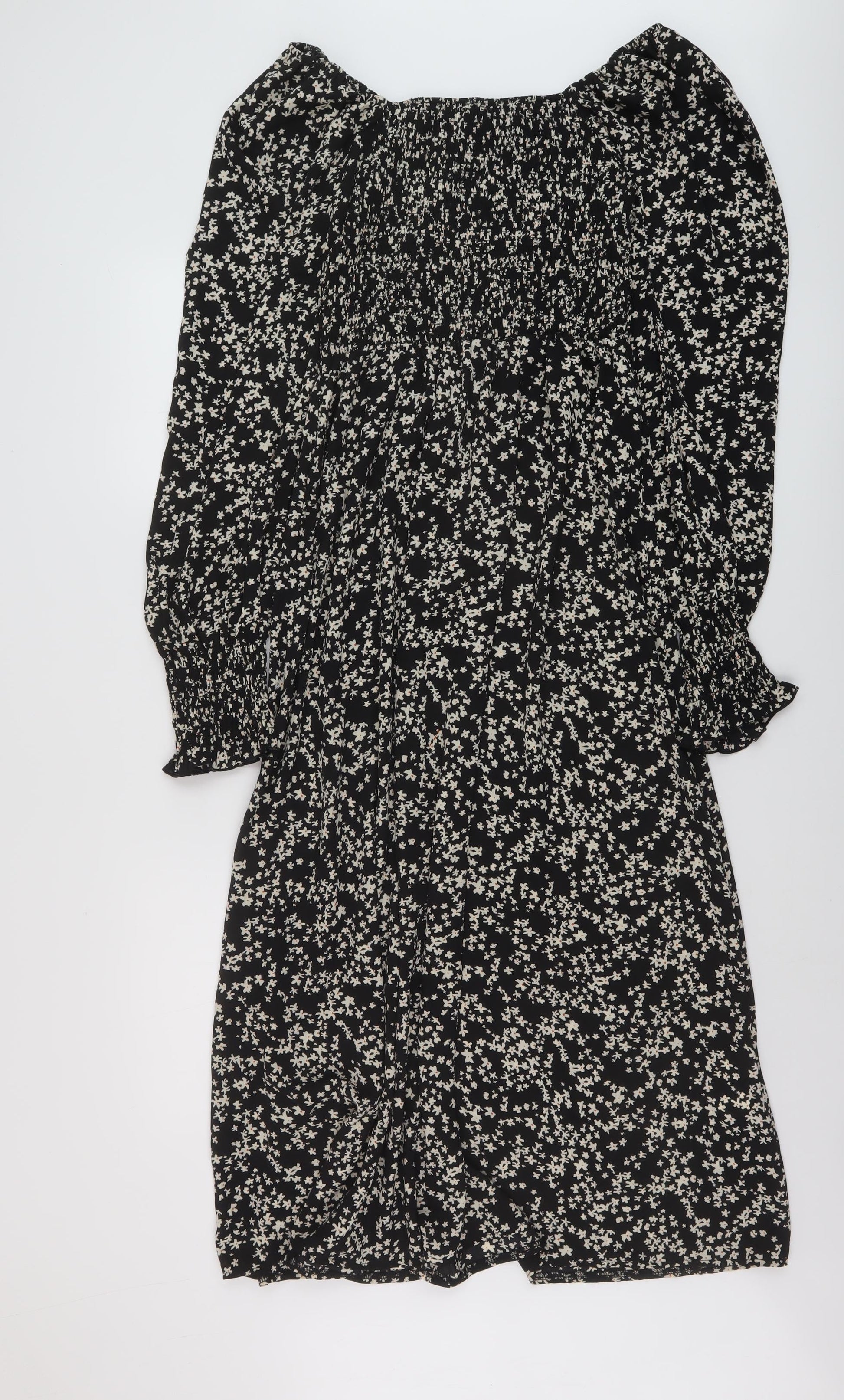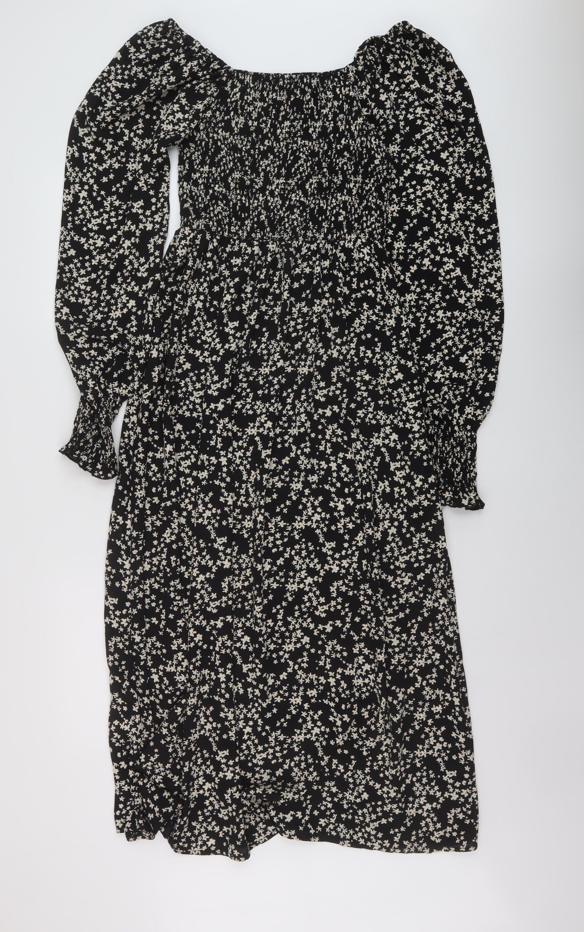 Missguided Womens Black Floral Polyester A-Line Size 8 Square Neck Pullover