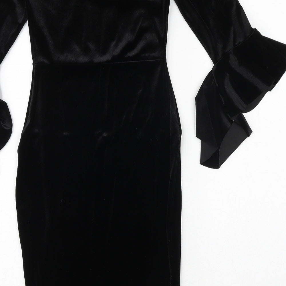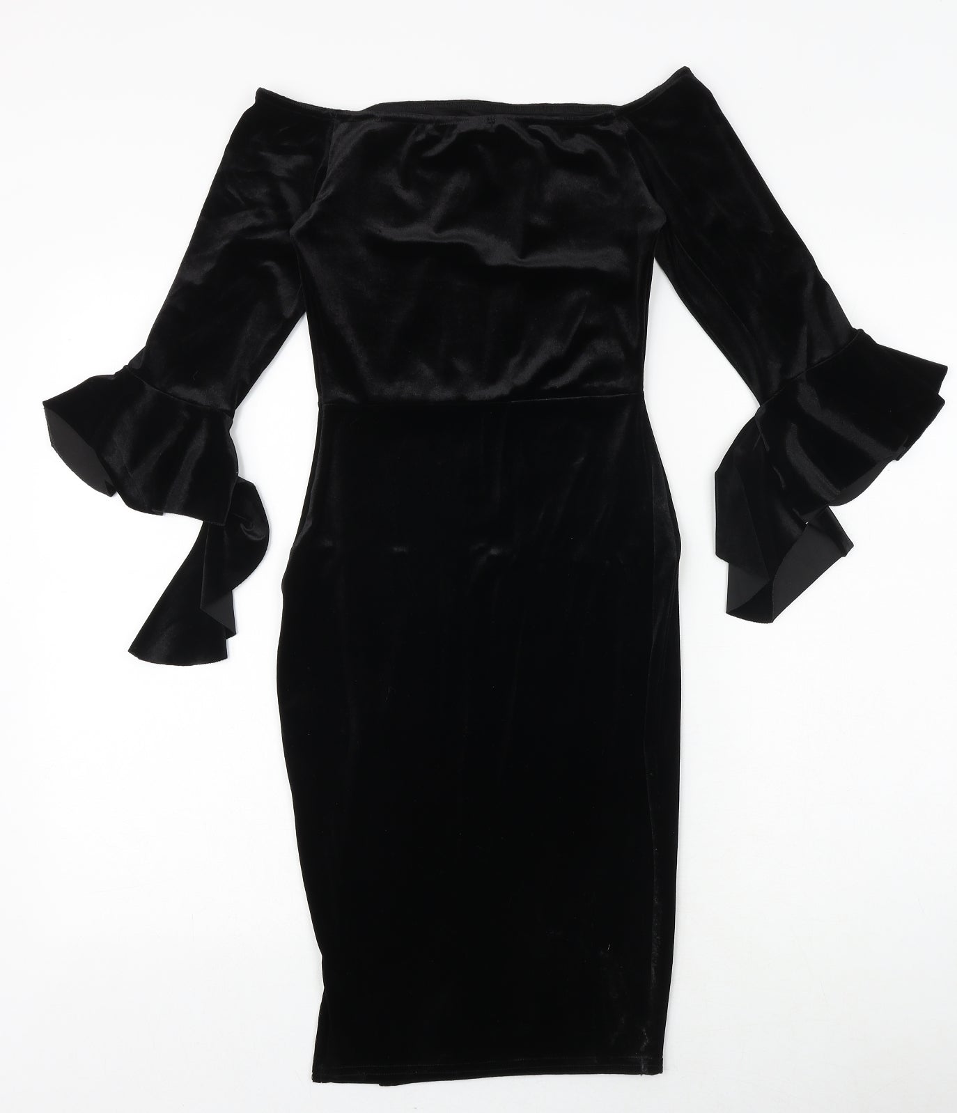 Missguided Womens Black Floral Polyester Bodycon Size 4 Off the Shoulder Pullover