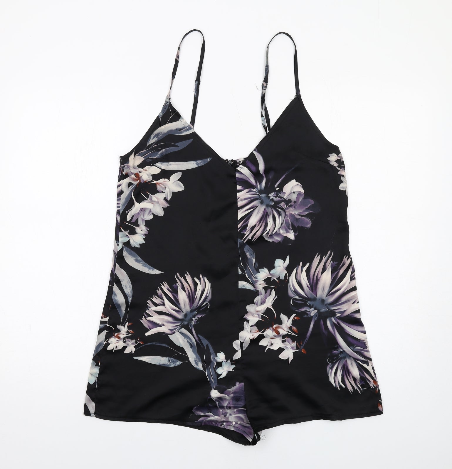 Missguided Womens Black Floral Polyester Playsuit One-Piece Size 10 Zip