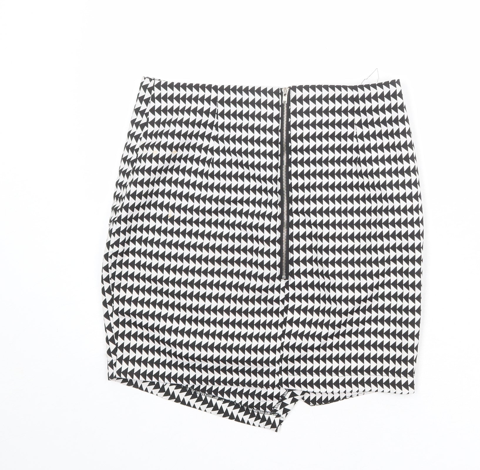 Missguided Womens Black Geometric Polyester A-Line Skirt Size 8 Zip