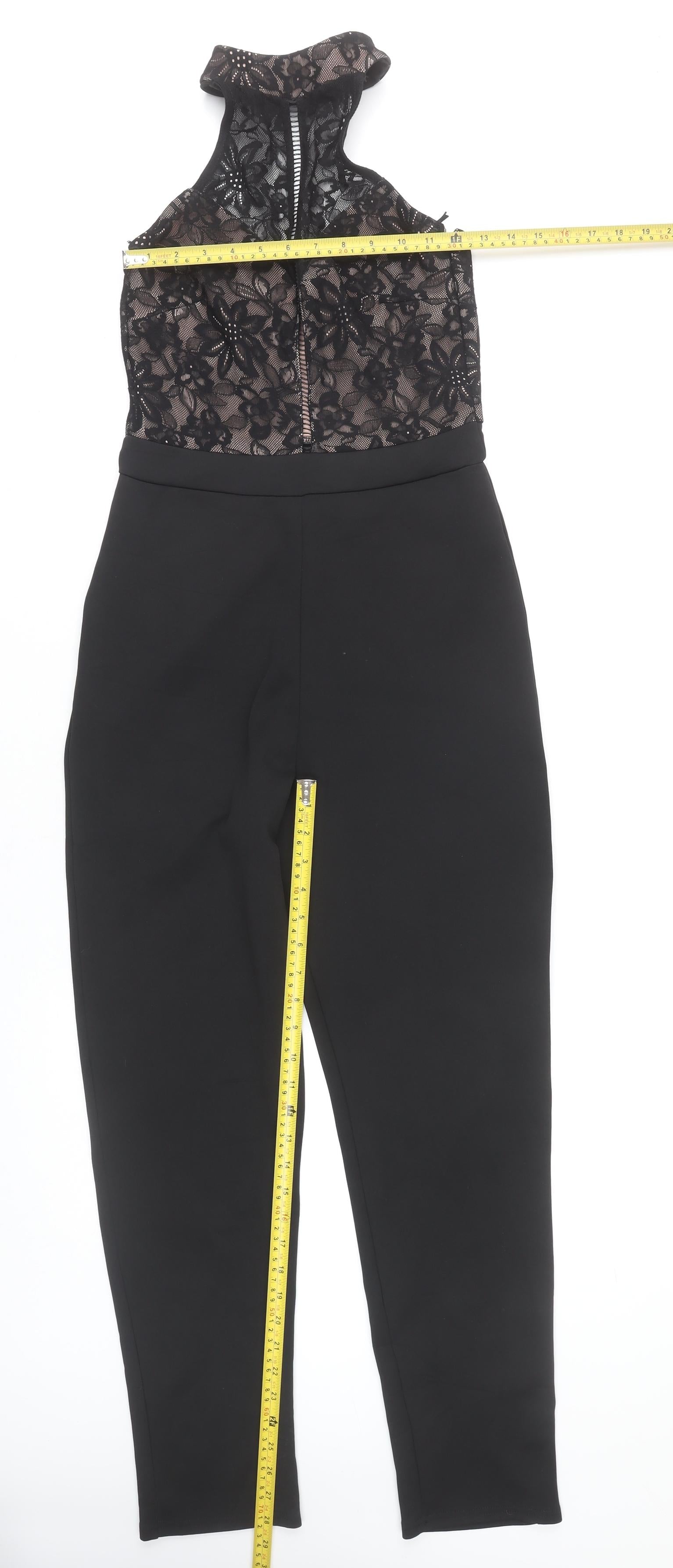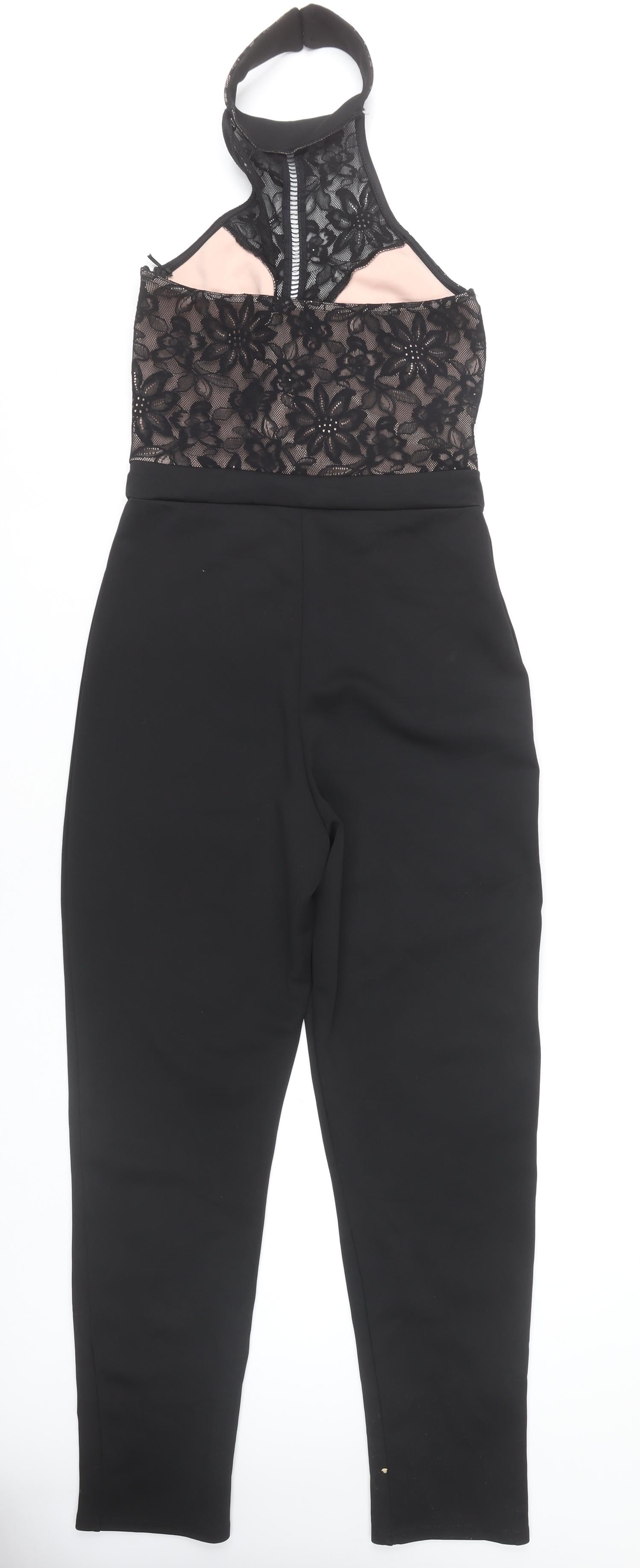 Missguided Womens Black Lace Halter Jumpsuit UK 10 Slim Fit Party