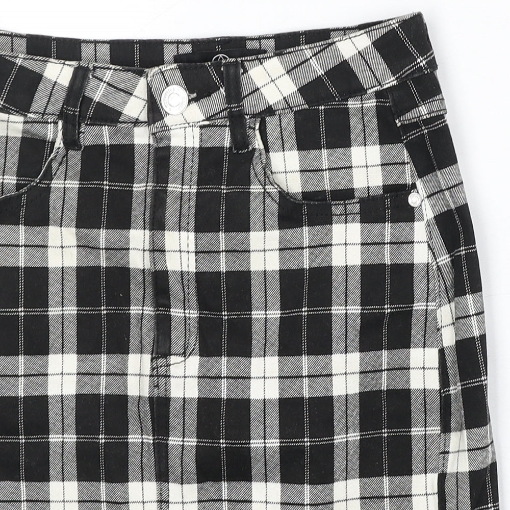 Missguided Womens Black Plaid Cotton A-Line Skirt Size 6 Zip