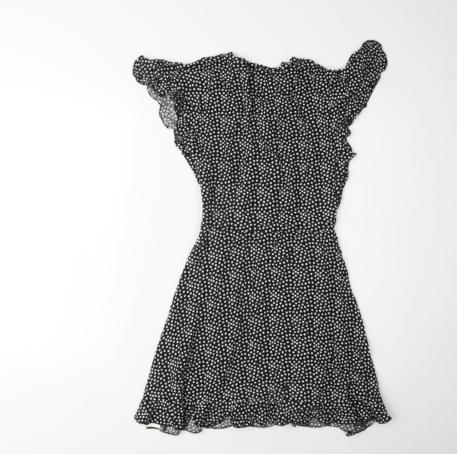 Missguided Women's Black Polka Dot Dress, Size 8, V-Neck
