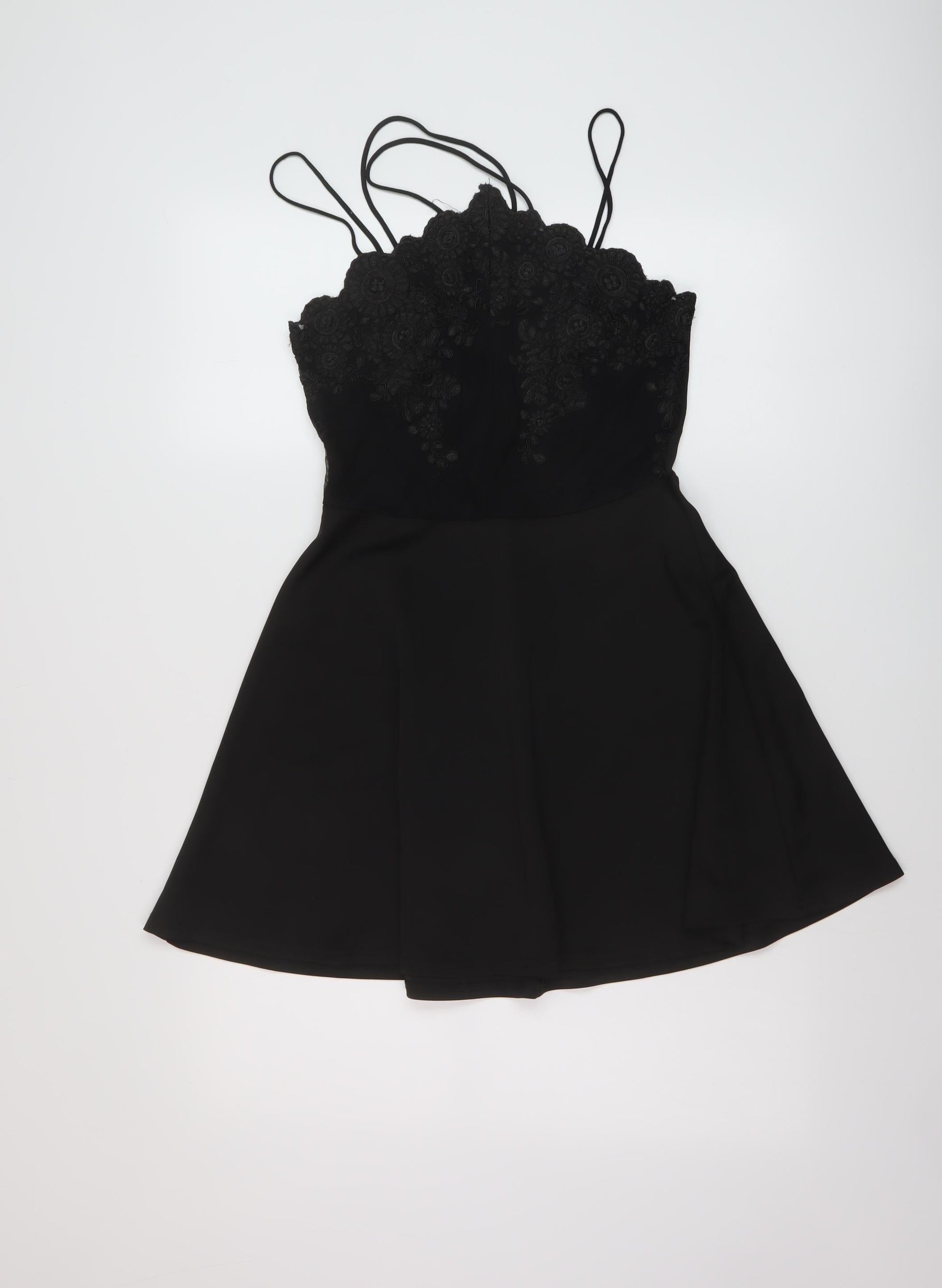 Missguided Womens Black Polyester A-Line Size 10 V-Neck Zip