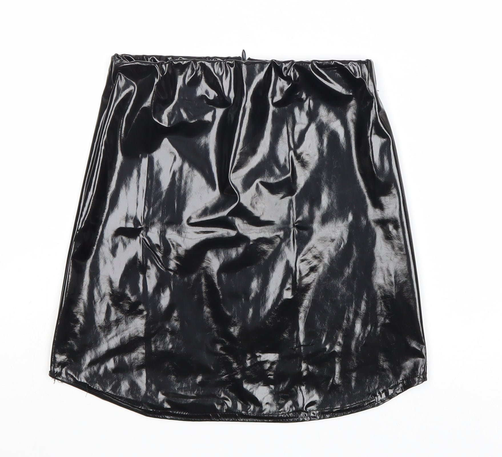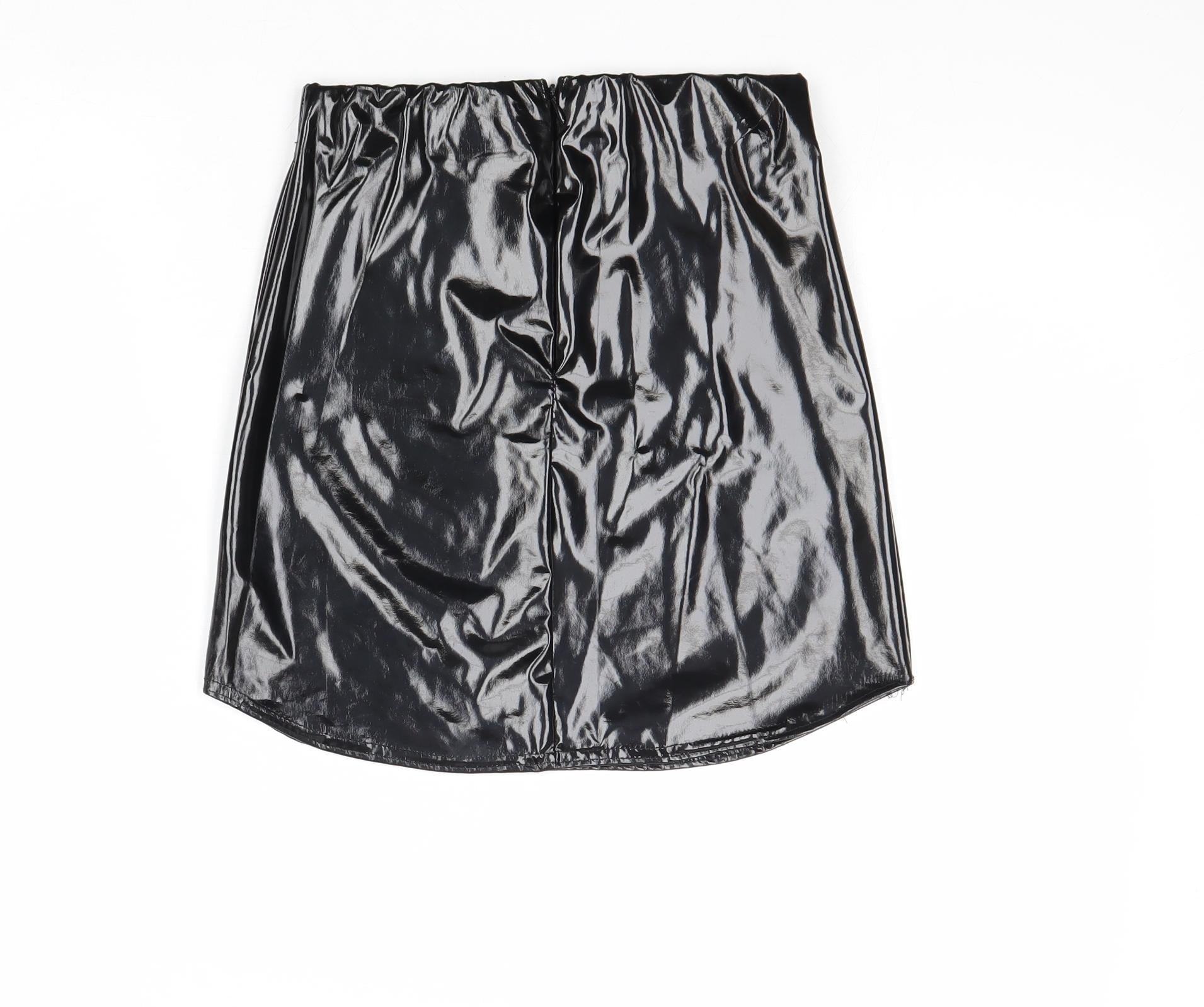Missguided Womens Black Polyester A-Line Skirt Size 8 Zip