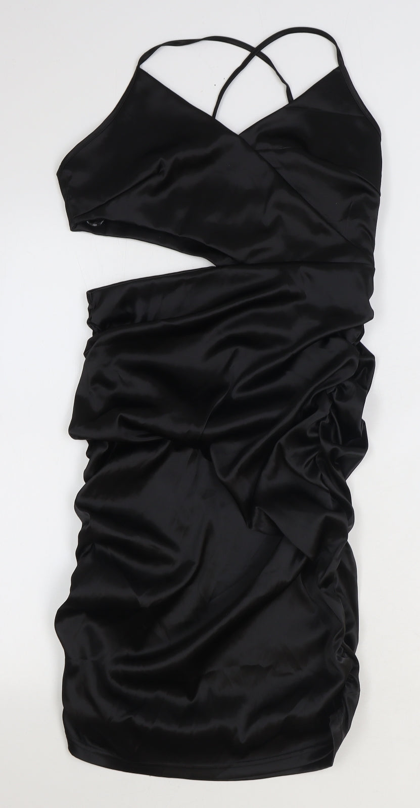 Missguided Womens Black Polyester Bodycon Size 10 V-Neck Zip