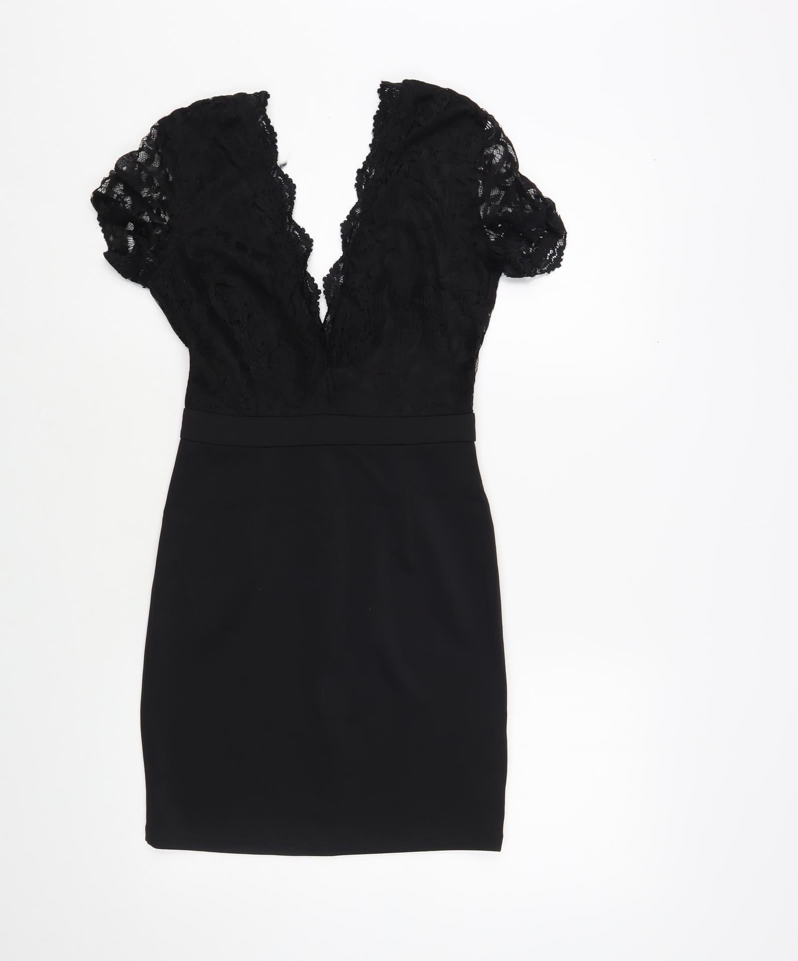 Missguided Womens Black Polyester Bodycon Size 8 V-Neck Zip - Lace Detail