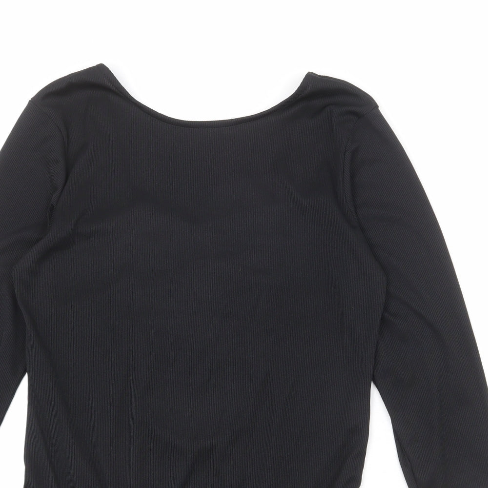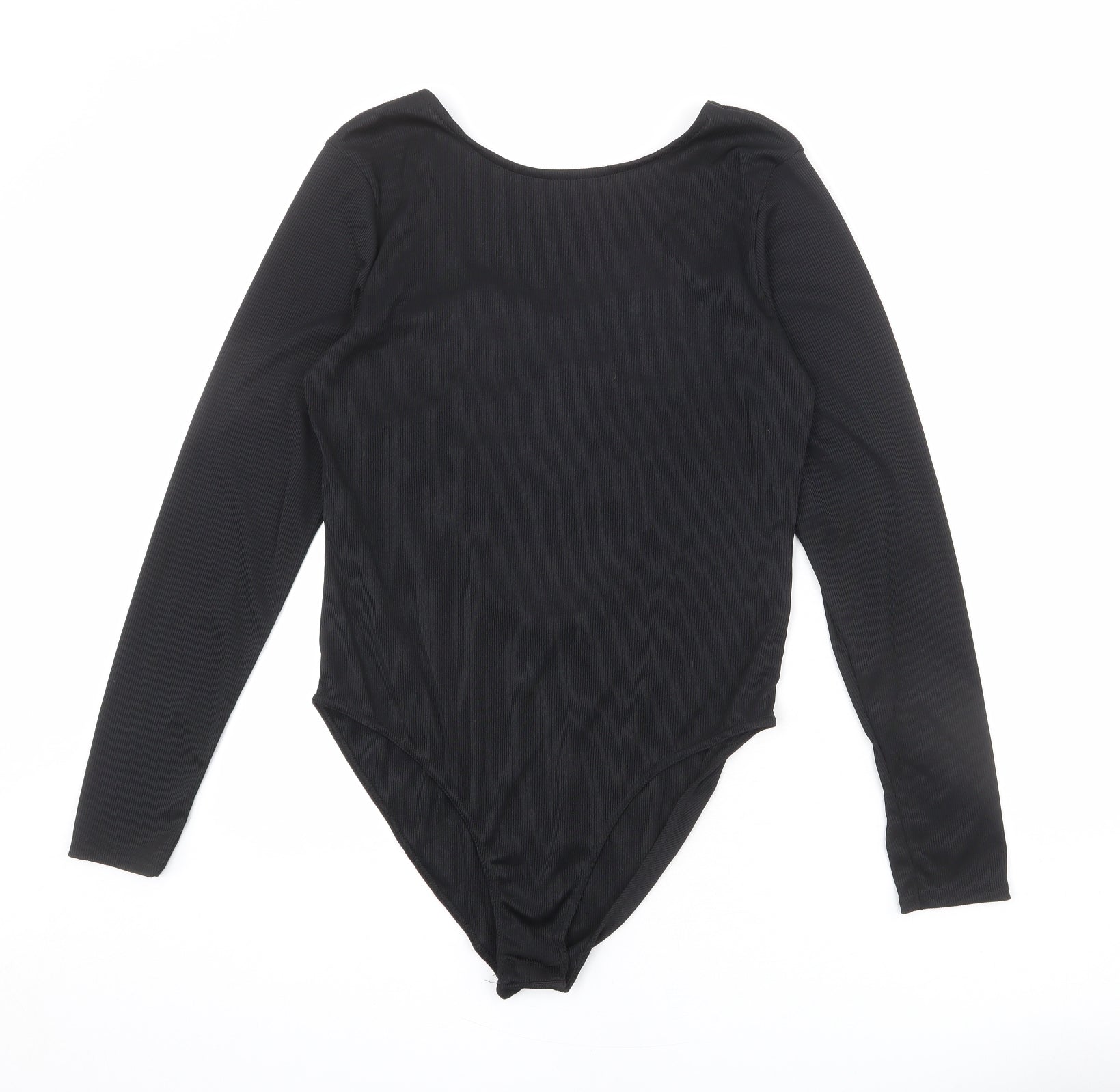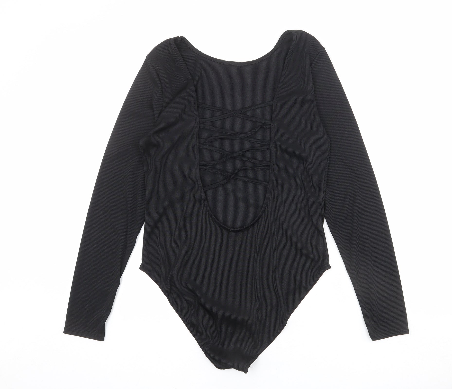 Missguided Womens Black Polyester Bodysuit One-Piece Size 14 Snap - Lace Up Back Detail