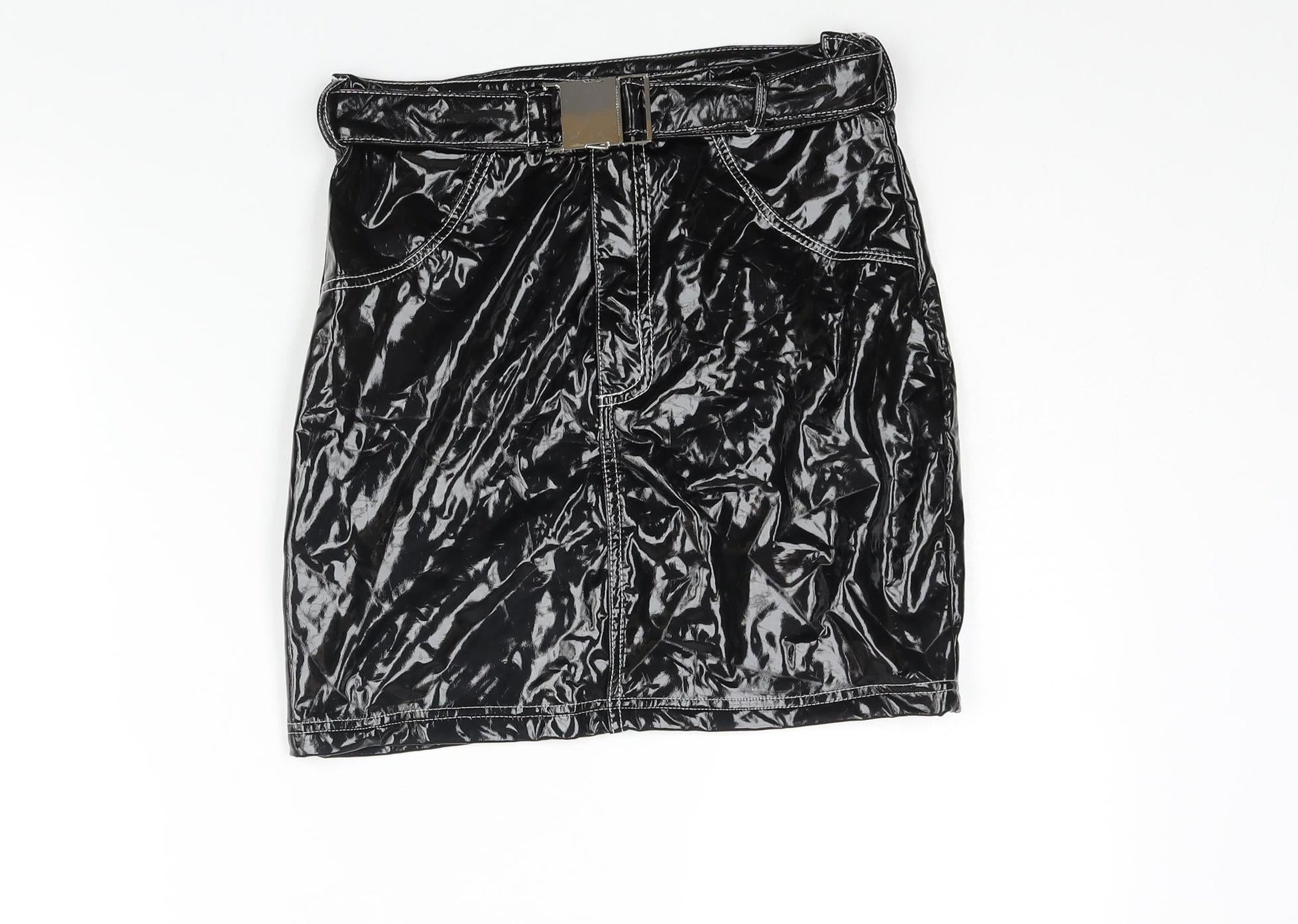 Missguided Womens Black Polyester Mini Skirt Size 6 Zip - Belted