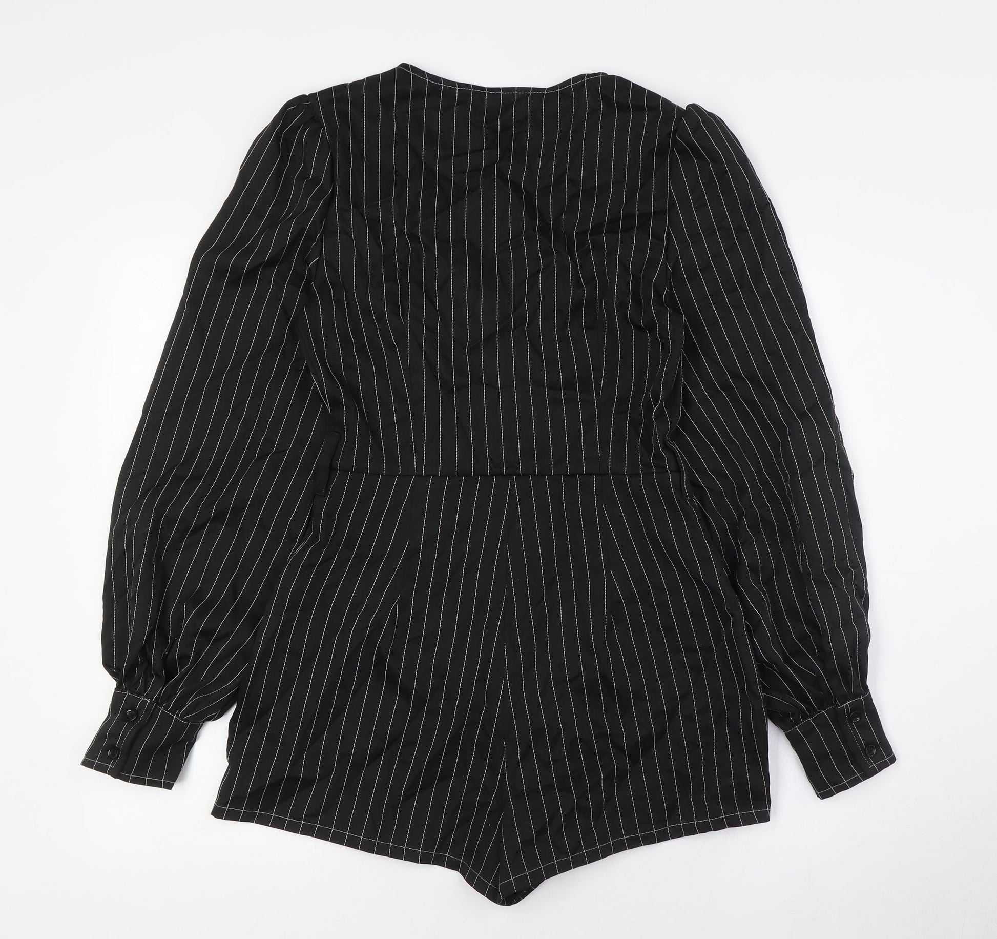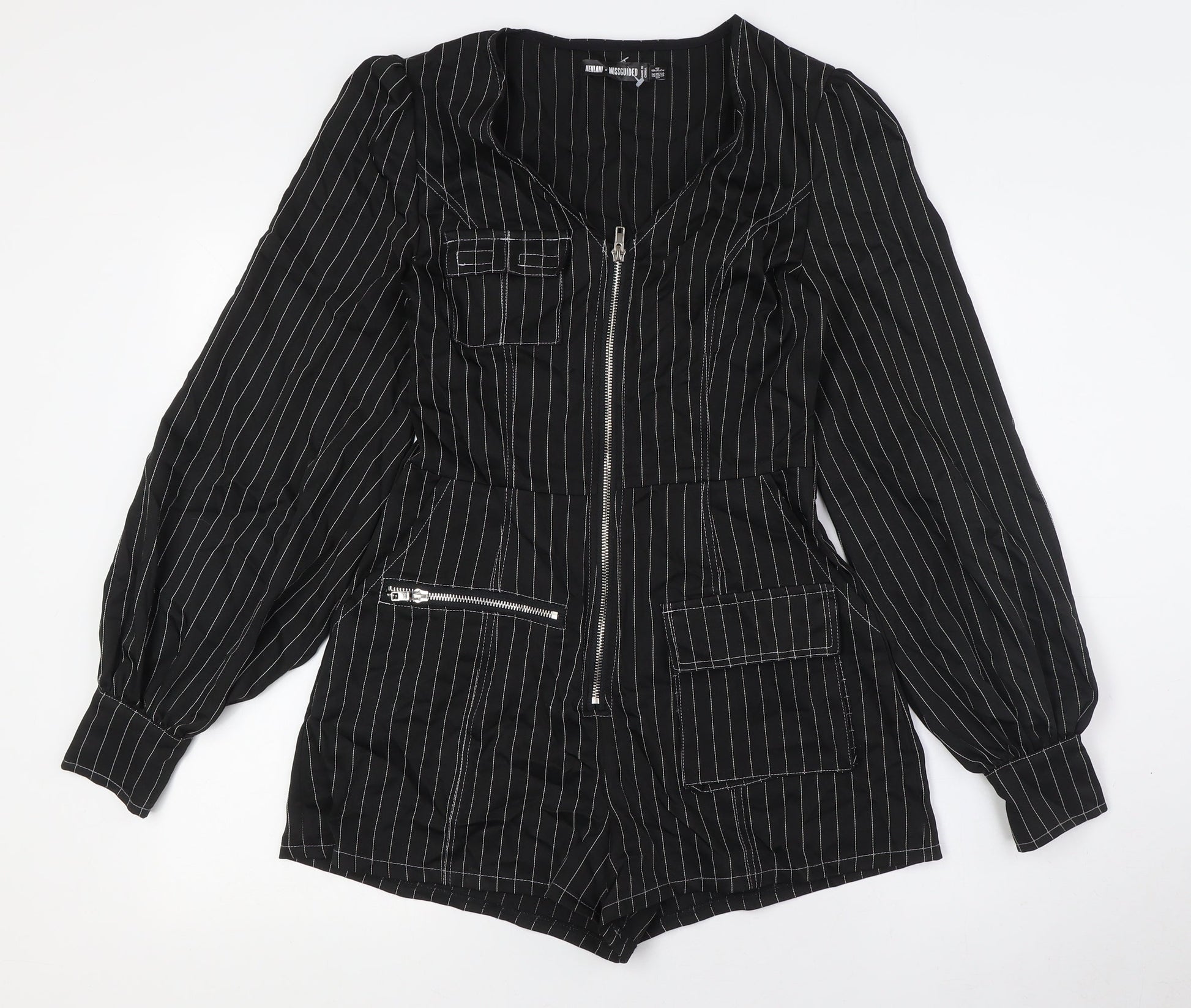 Missguided Womens Black Striped Polyester Playsuit One-Piece Size 6 - Zip pocket