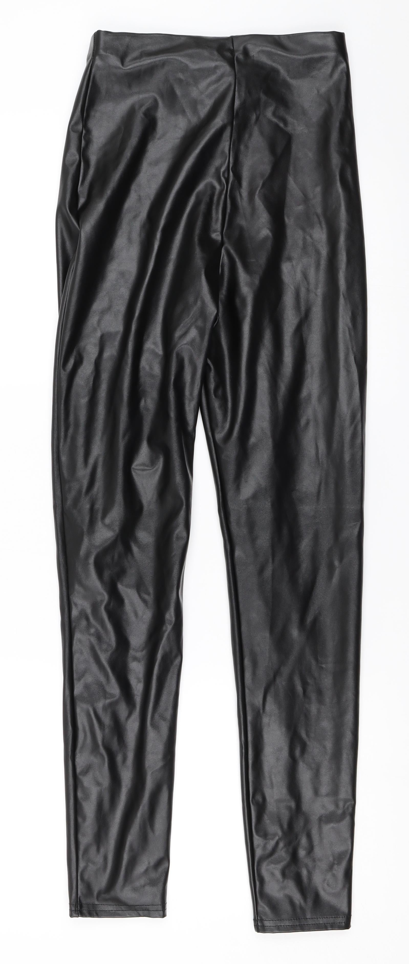 Missguided Womens Black Trousers Size 8 L26.5 in - faux leather trousers