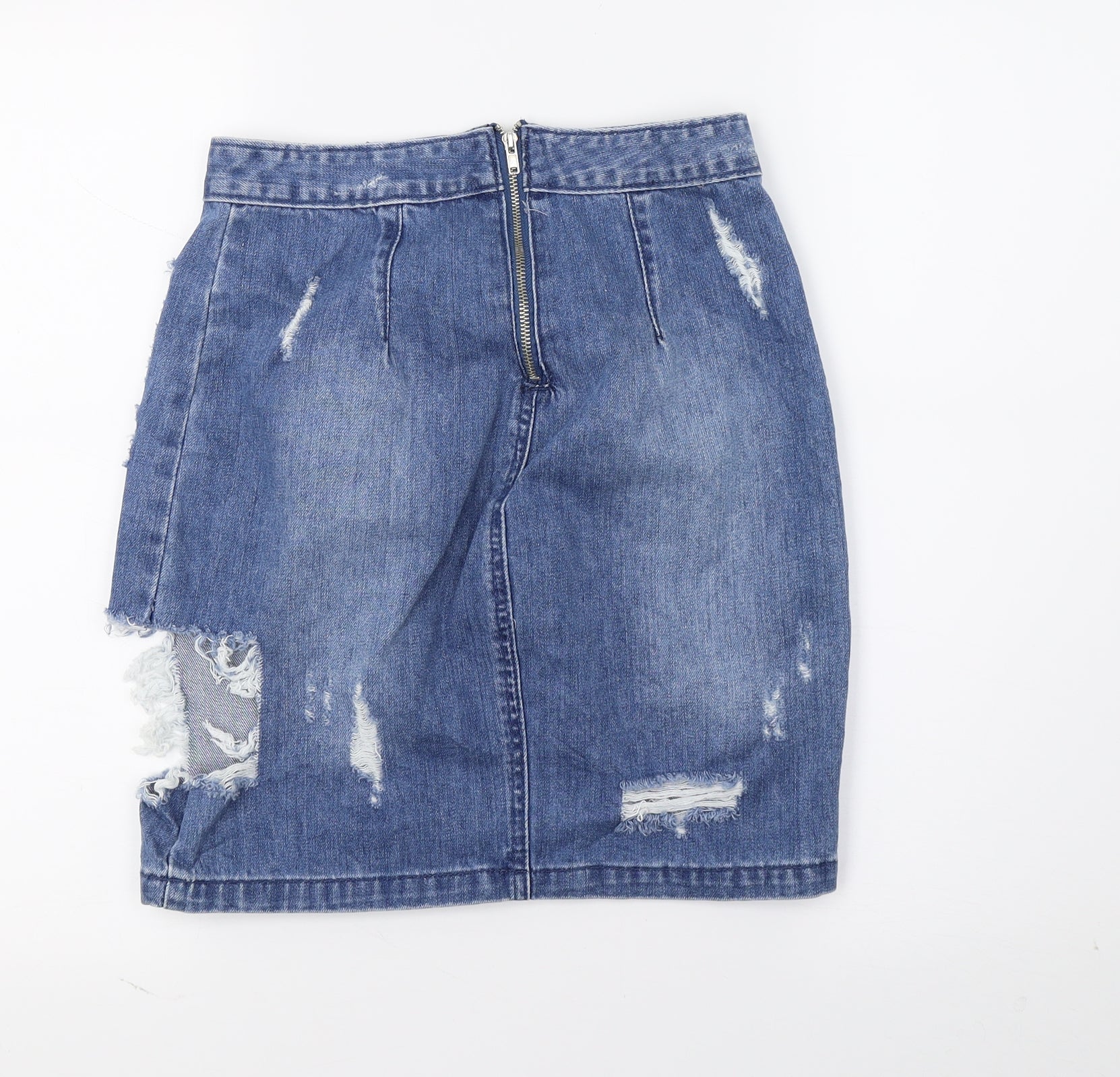 Missguided Womens Blue Denim A-Line Skirt Size 8 - Distressed