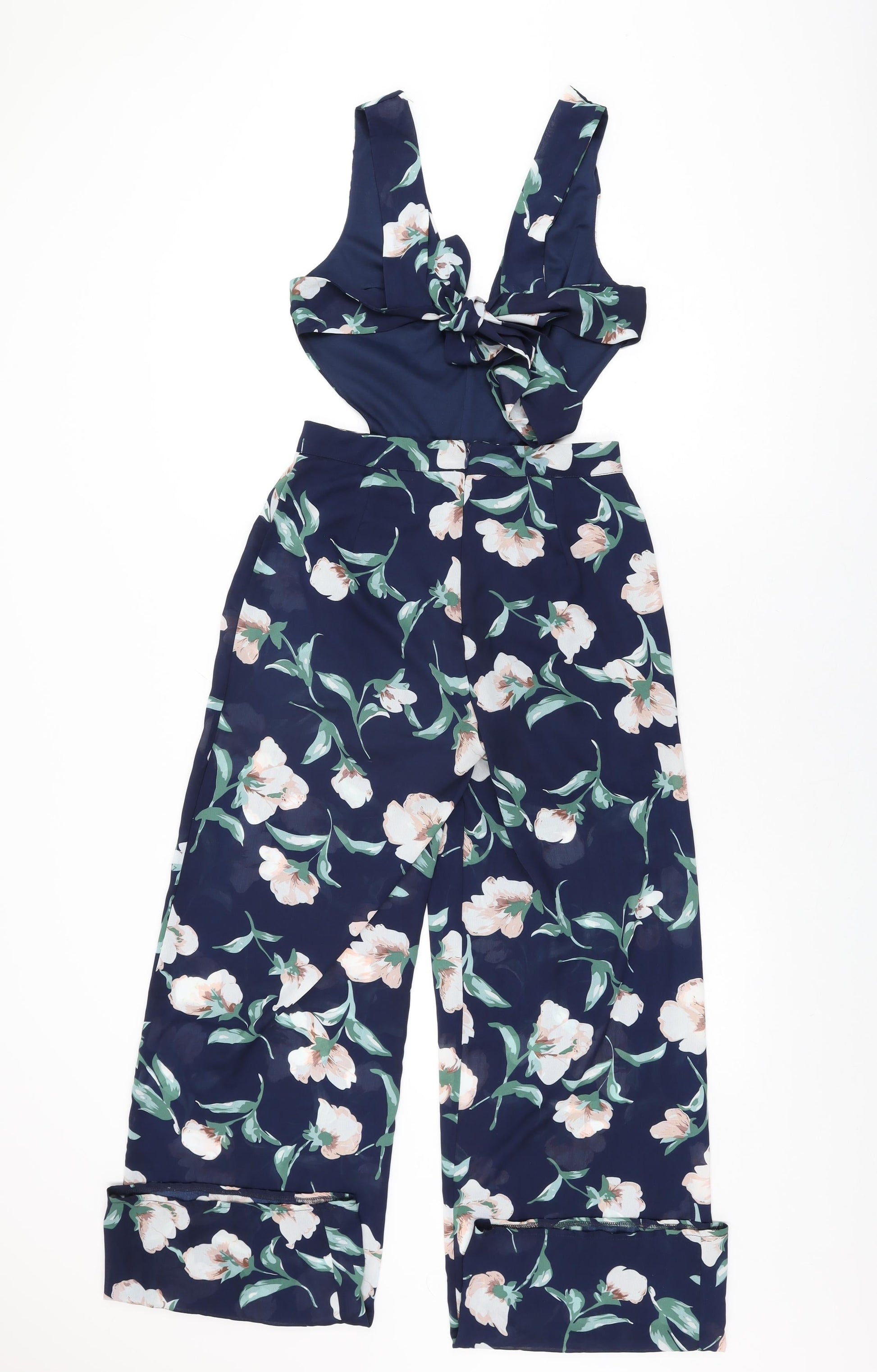 Missguided Womens Blue Floral Polyester Jumpsuit One-Piece Size 8 L32 in Zip