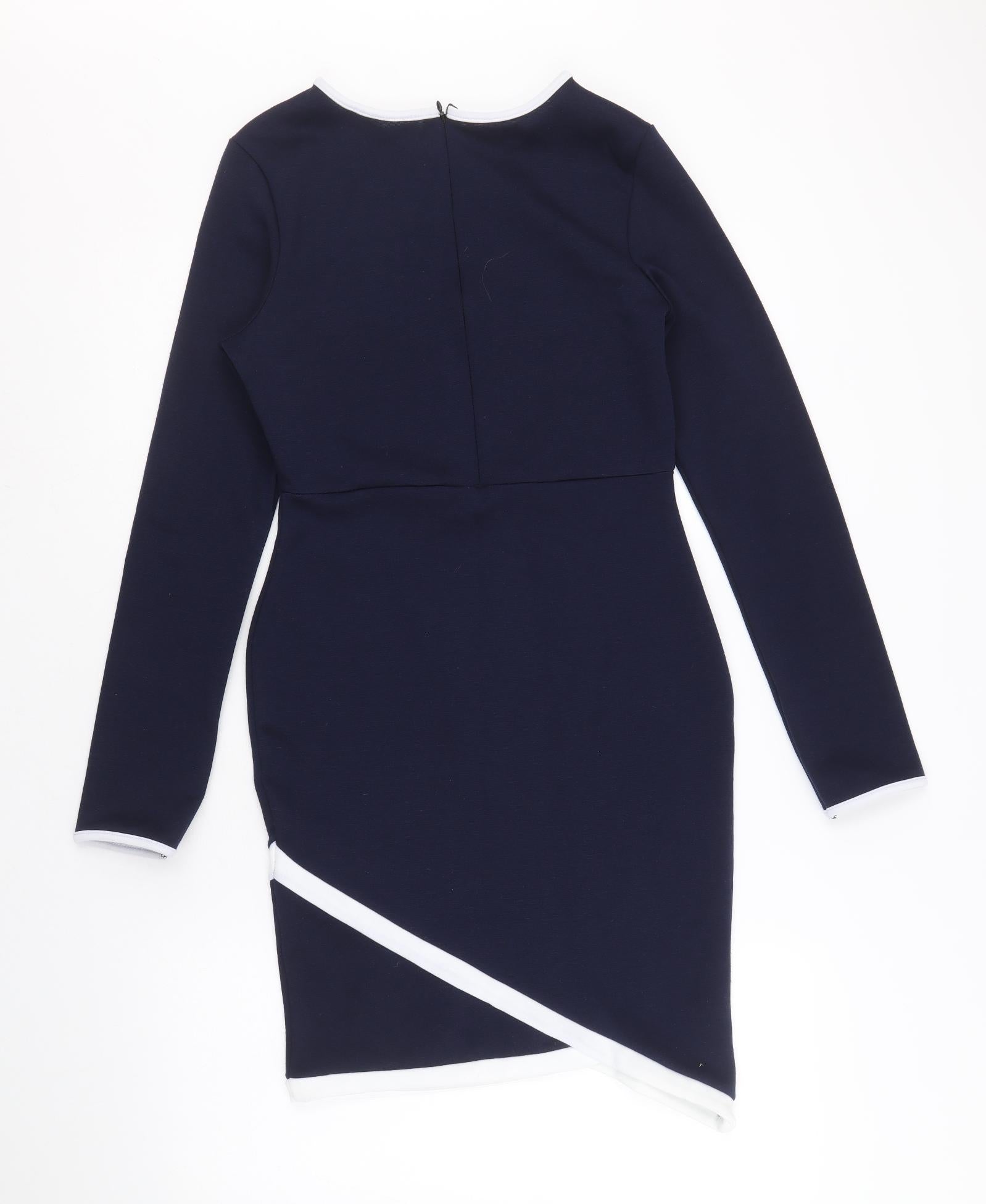 Missguided Womens Blue Polyester Bodycon Size 10 Boat Neck Zip - Asymmetric Detail