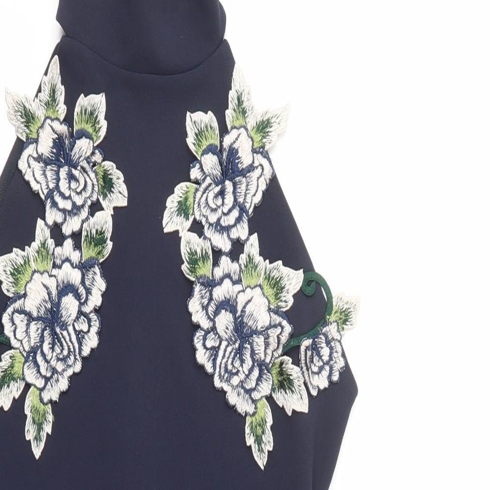 Missguided Womens Blue Polyester Bodycon Size 10 High Neck Zip - Lace Detail