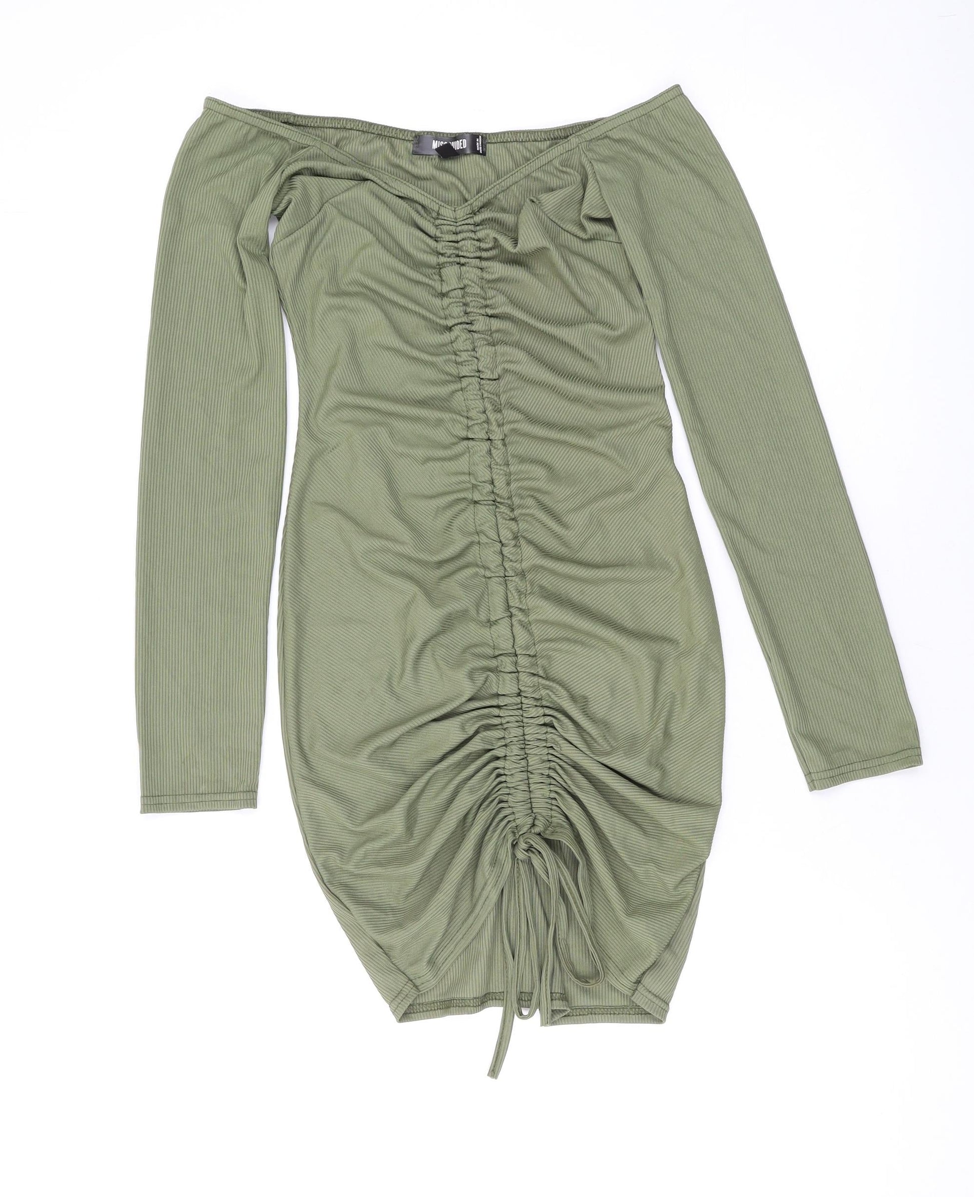 Missguided Womens Green Polyester Mini Size 8 Off the Shoulder Pullover
