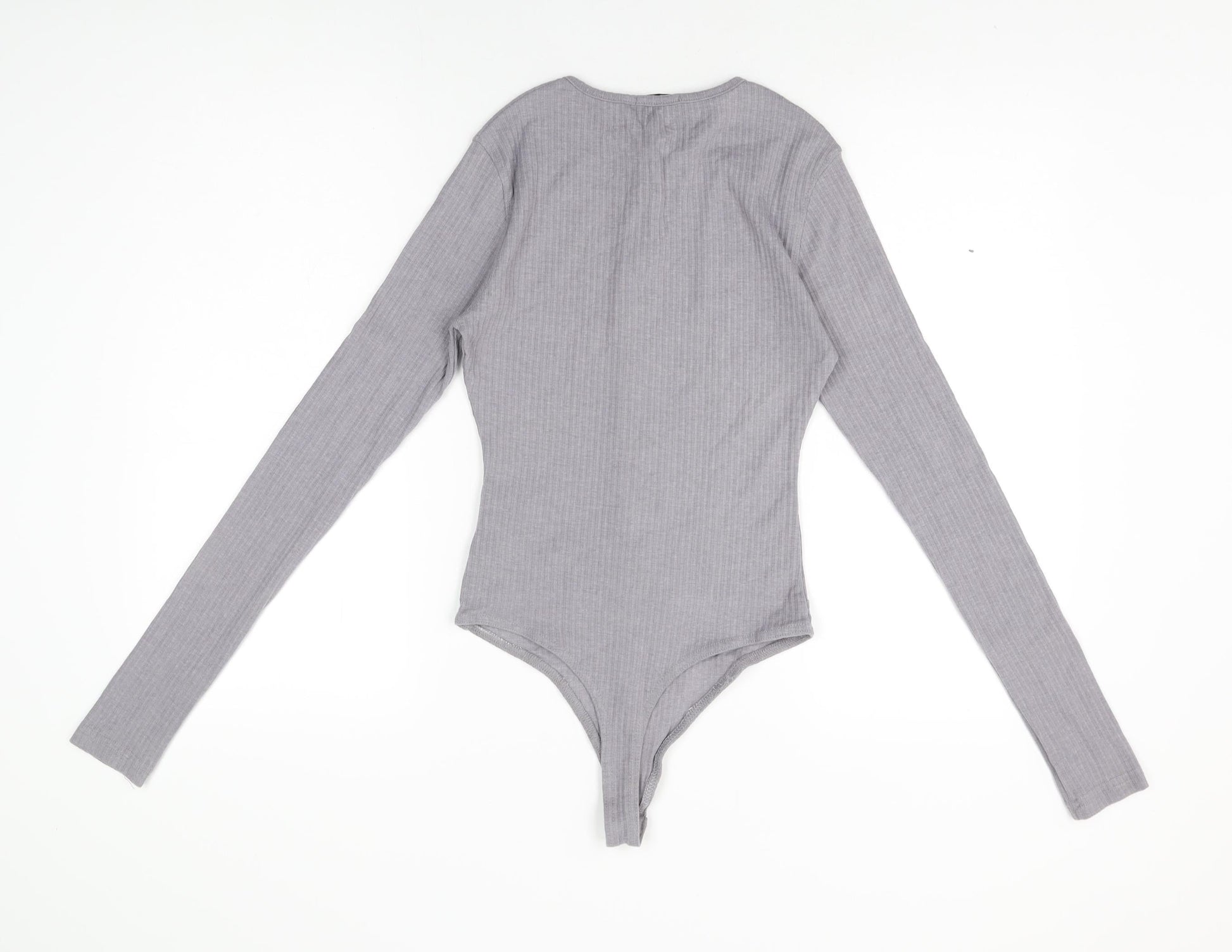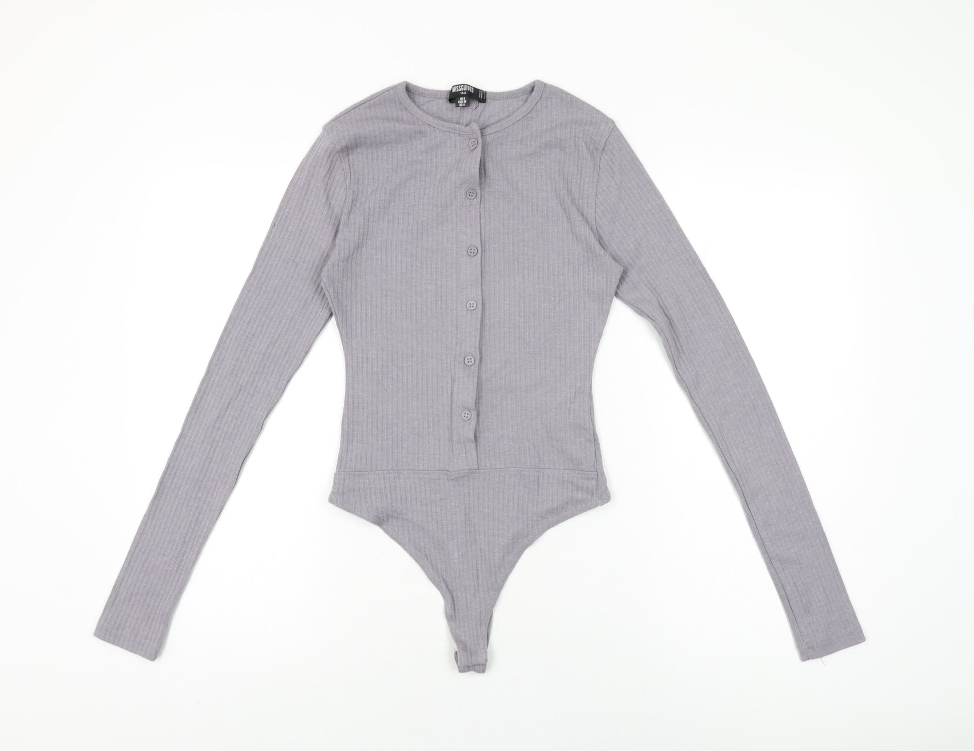 Missguided Womens Grey Cotton Bodysuit One-Piece Size 8 Snap