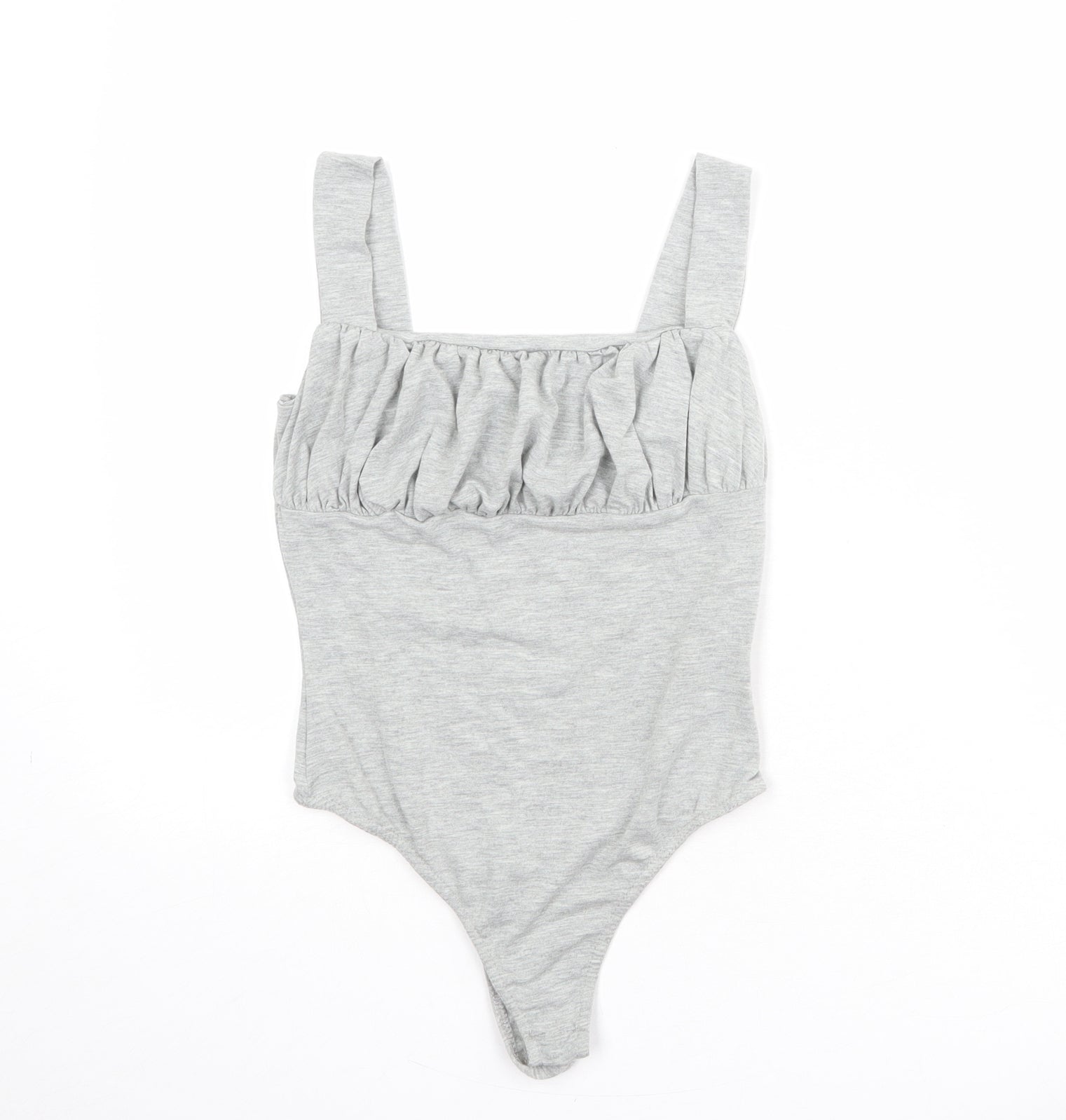 Missguided Womens Grey Viscose Bodysuit One-Piece Size 12 Snap