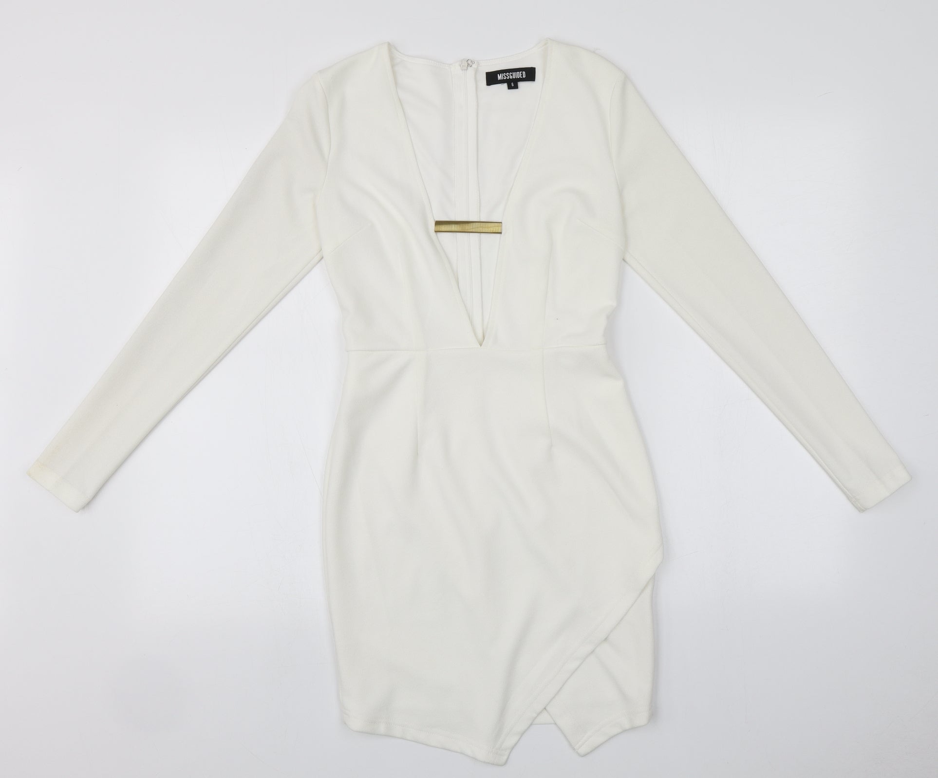 Missguided Womens Ivory Polyester Pencil Dress Size 6 V-Neck
