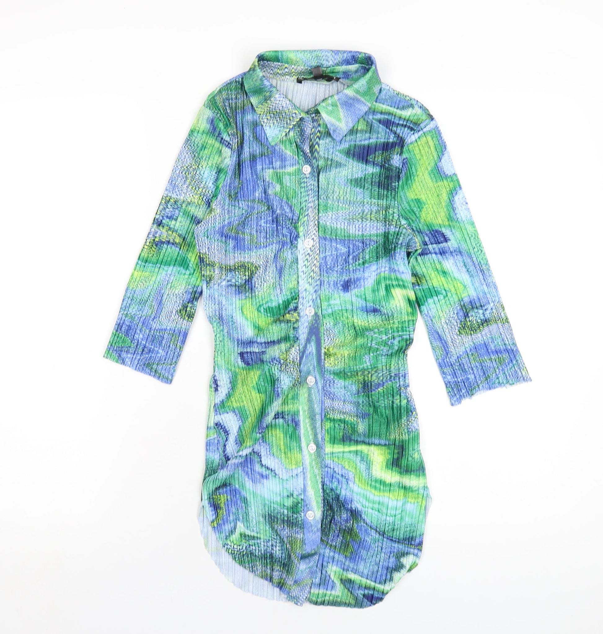 Missguided Womens Multicoloured Geometric Polyester Shirt Dress Size 6 Collared Button
