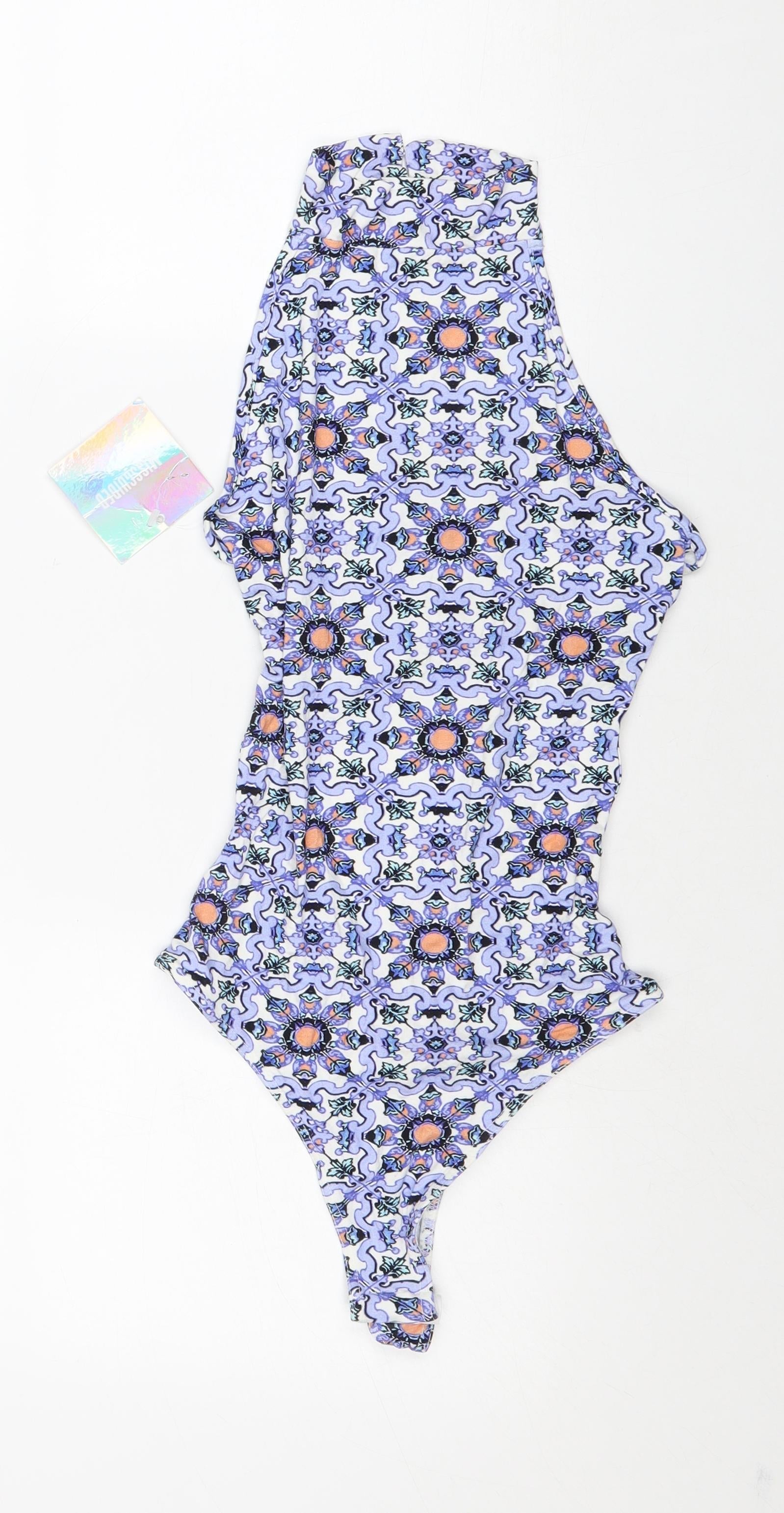 Missguided Womens Multicoloured Geometric Viscose Bodysuit One-Piece Size 8 Tie