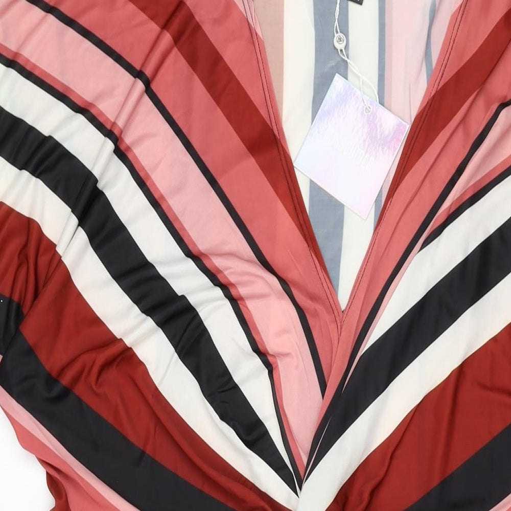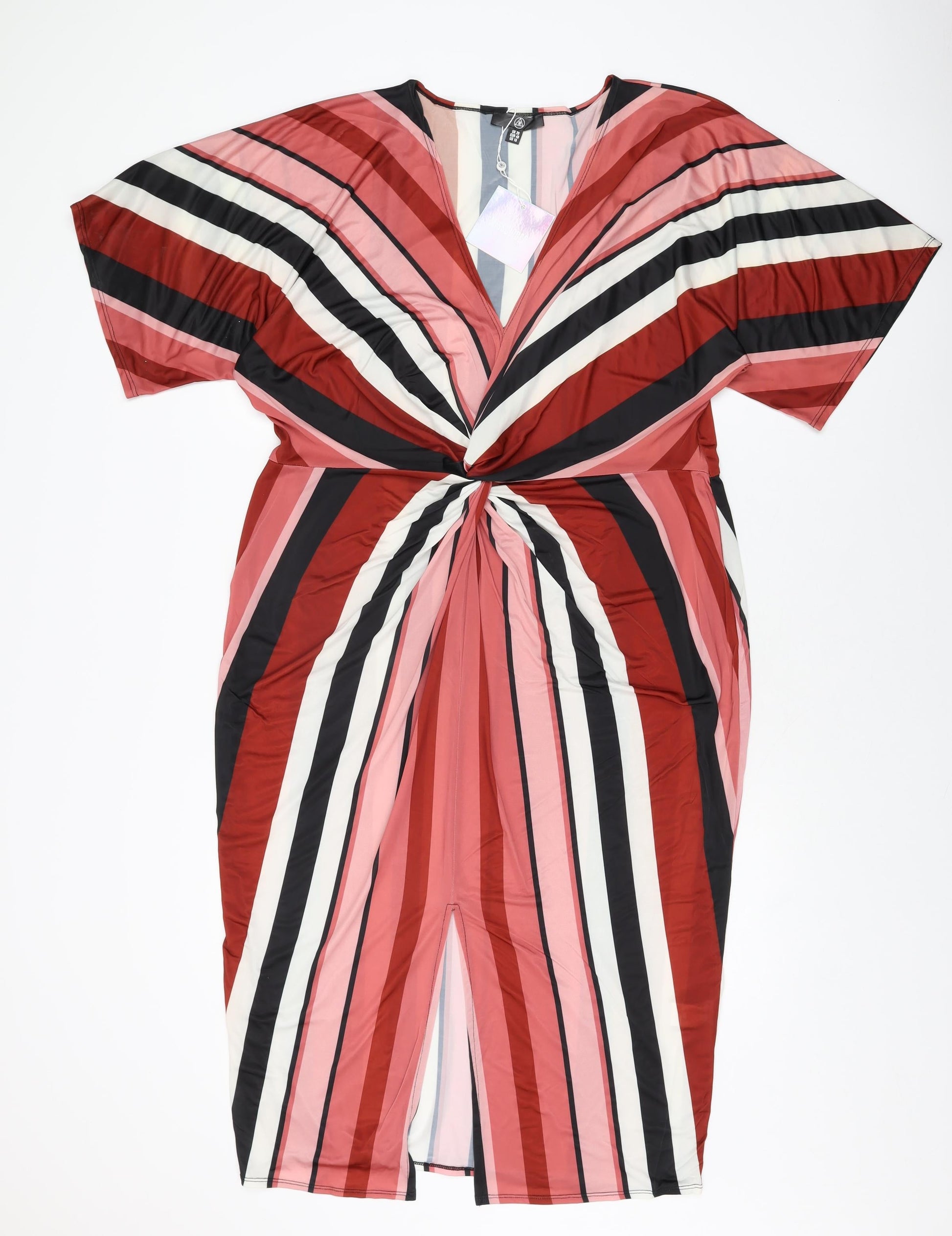 Missguided Womens Multicoloured Striped Polyester Shift Size 20 V-Neck Pullover